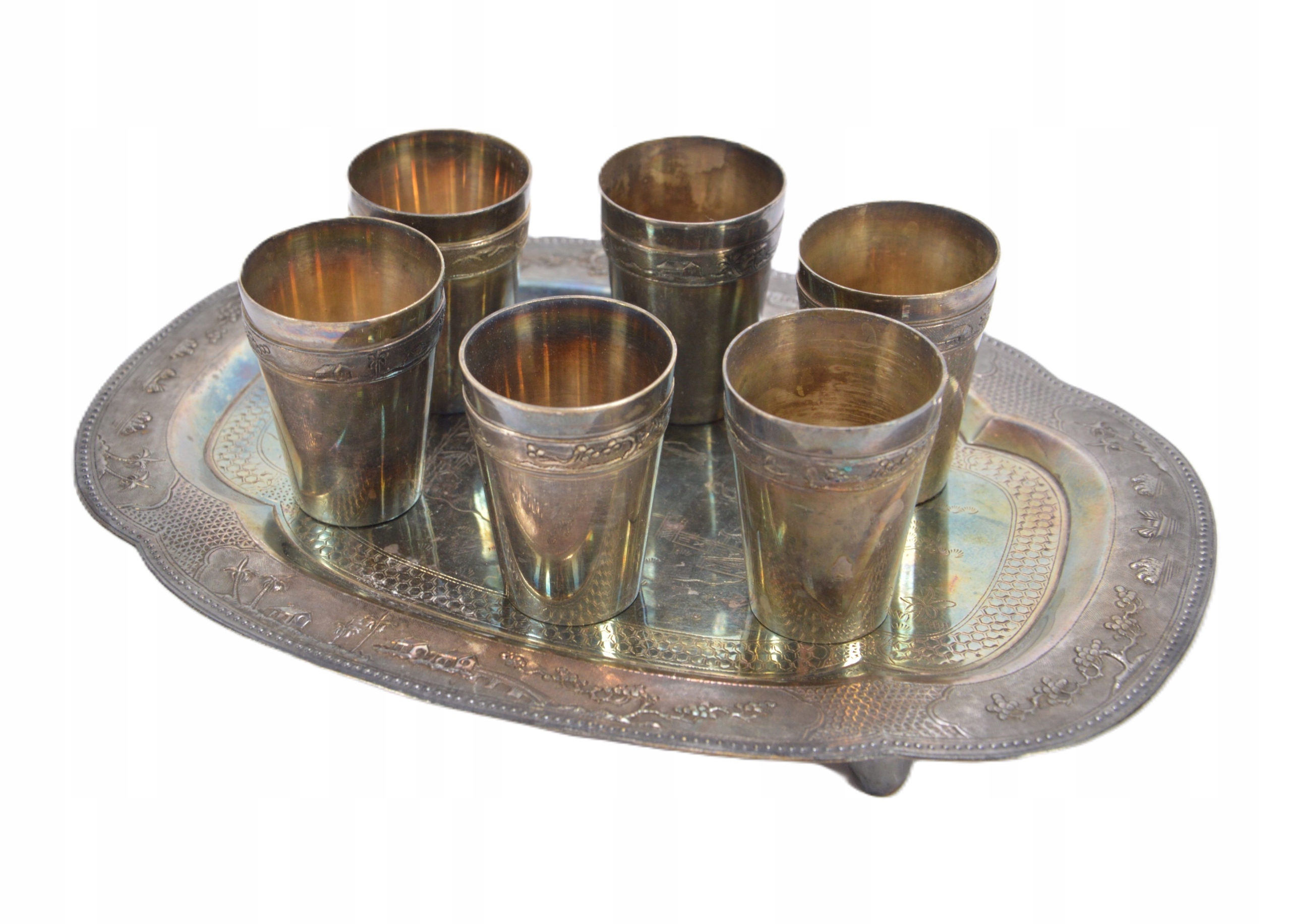 PATERA ORIENTALNA TACA KIELISZKI 6 szt. SREBRO WIETNAM 289 gr.