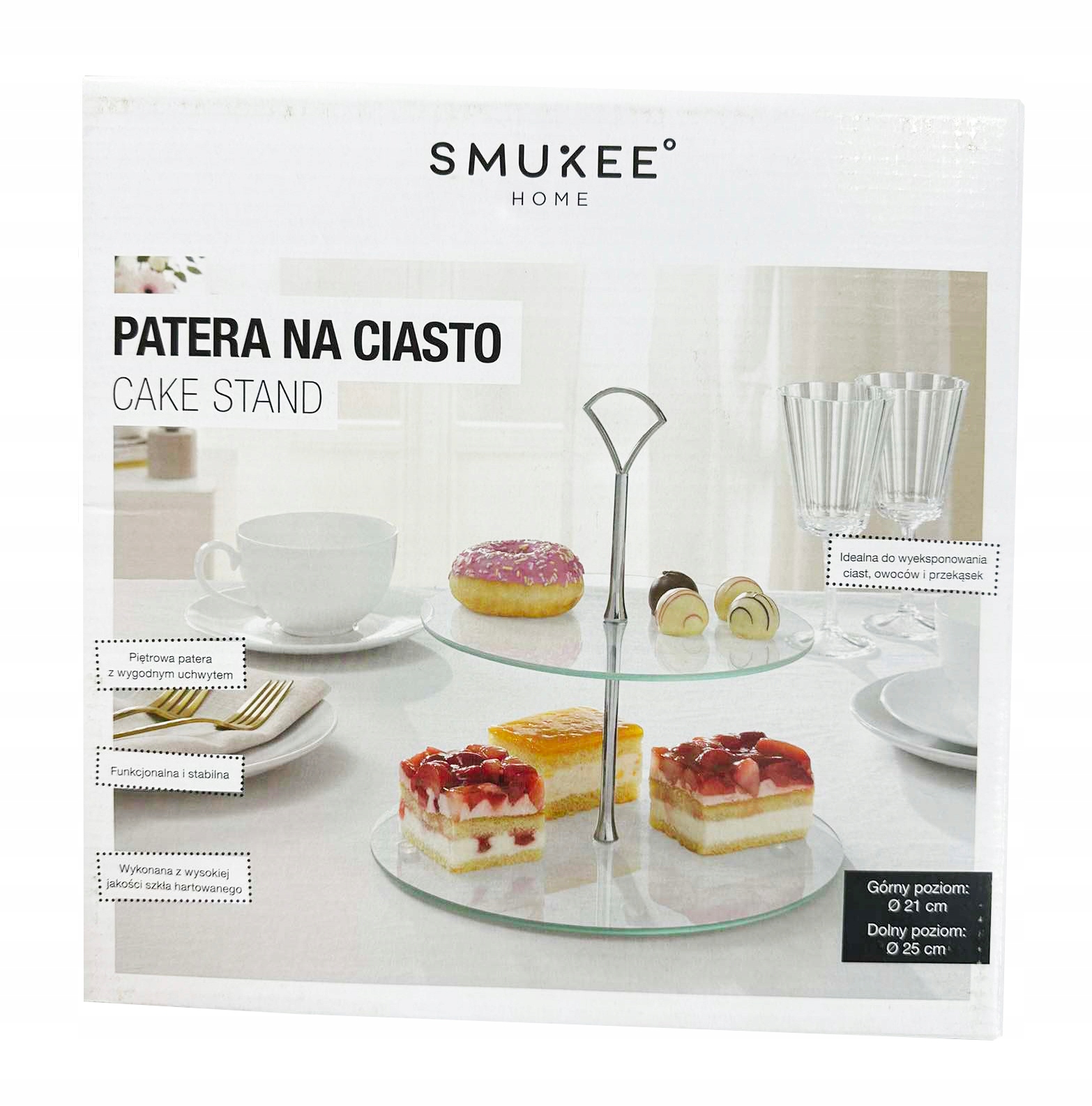 Cake Patera с двумя уровнями от бренда слизи изготовлен из высококачественного измельченного стекла, благодаря которой характеризуется высоким гигиеном - измеренное стекло не поглощает запахи.