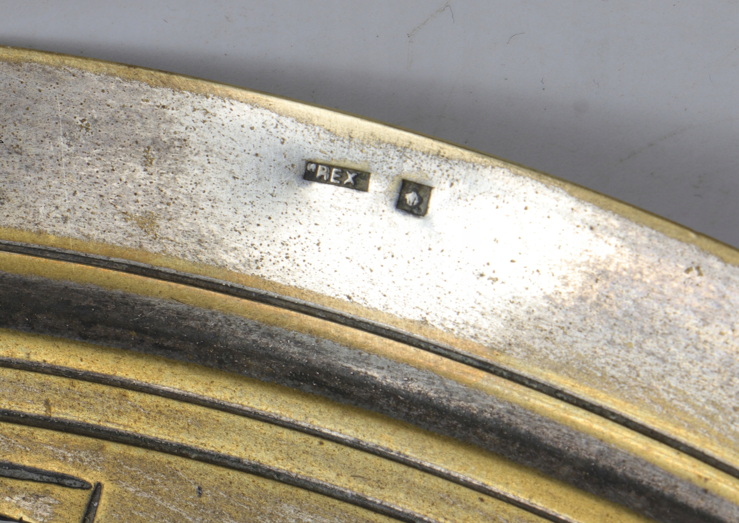 декоративное искусство модерн Патера из таблицы. Украшен характерным орнаментом волнистых плавных линий, проходящих в цветочный орнамент. Социализированные две заостренные скобки дают очень динамичную форму всей пластины. Основная Патера. Справочный номер REX, используемый Paris Company Orbille