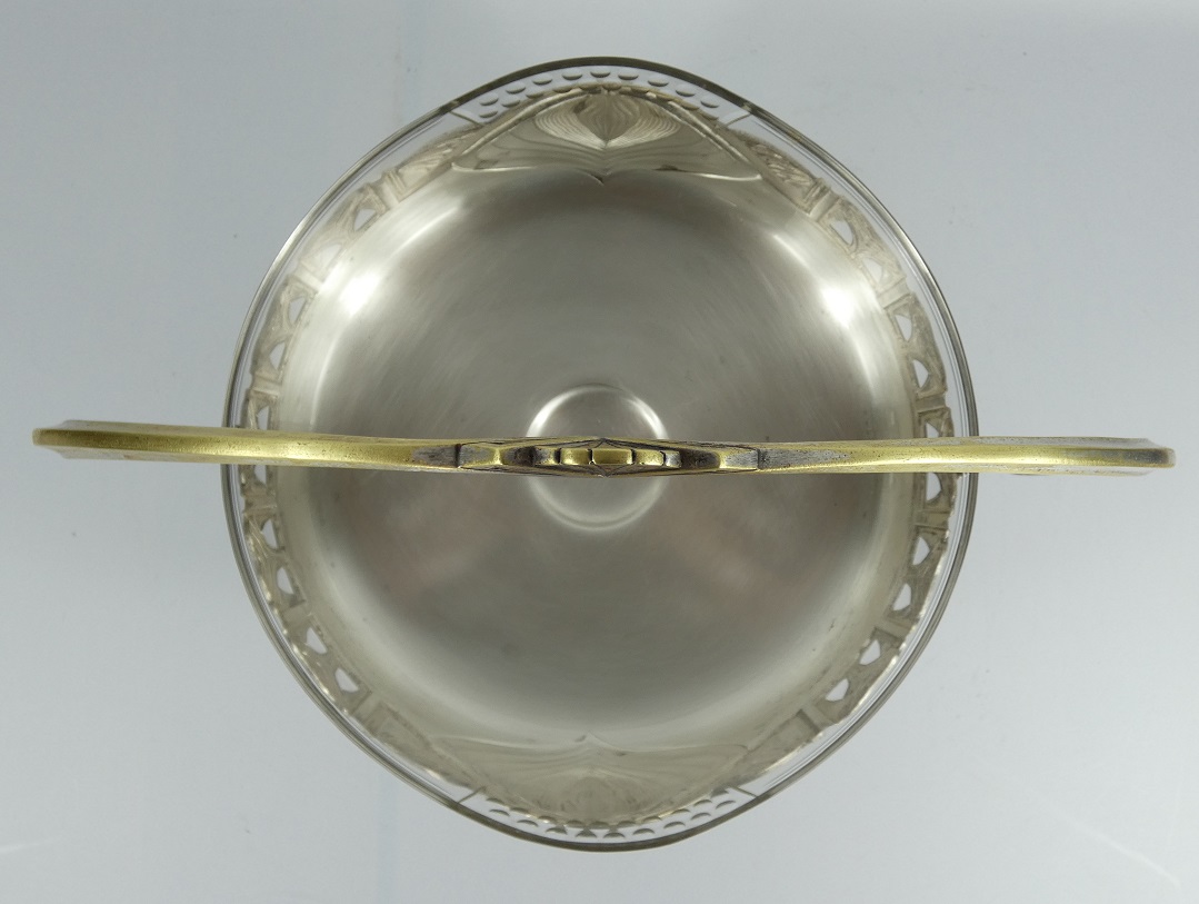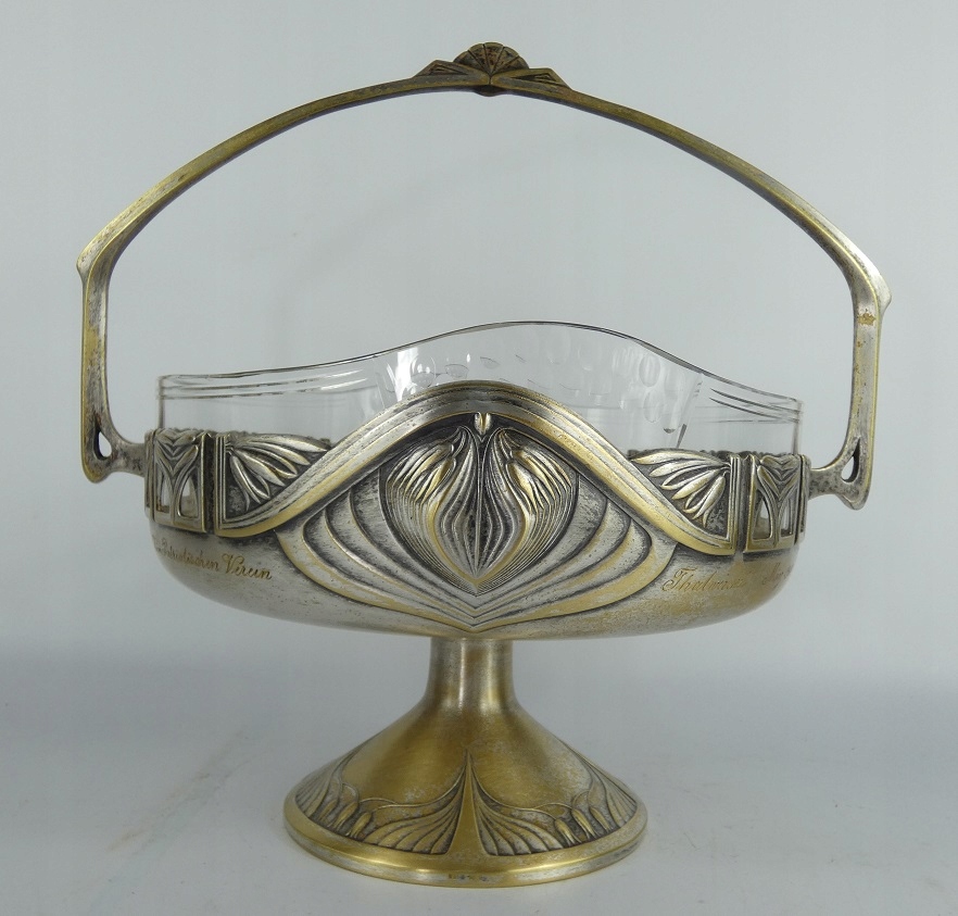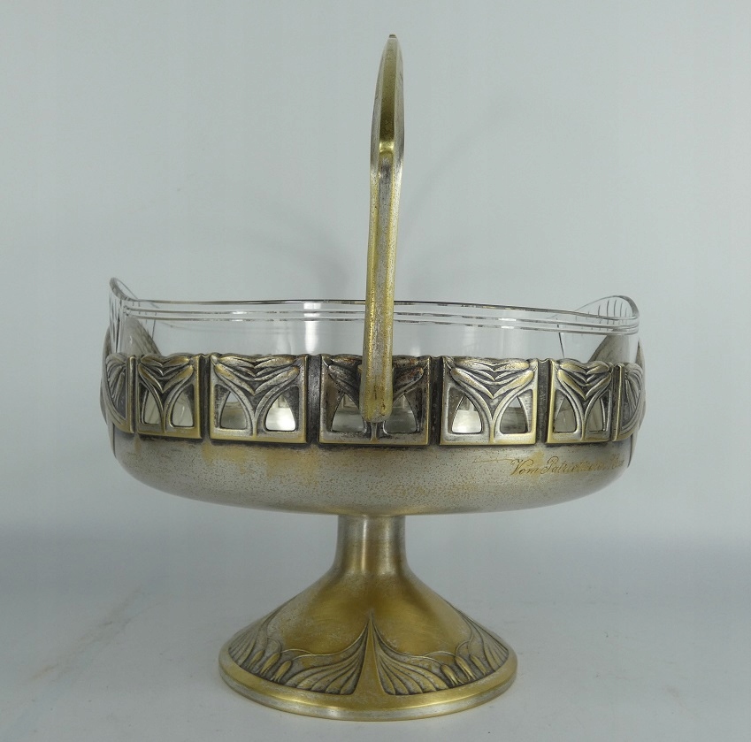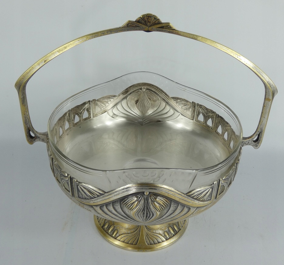 ТАРЕЛКА с ручкой, стеклянная корзина, посеребренная латунь WMF SECESJA