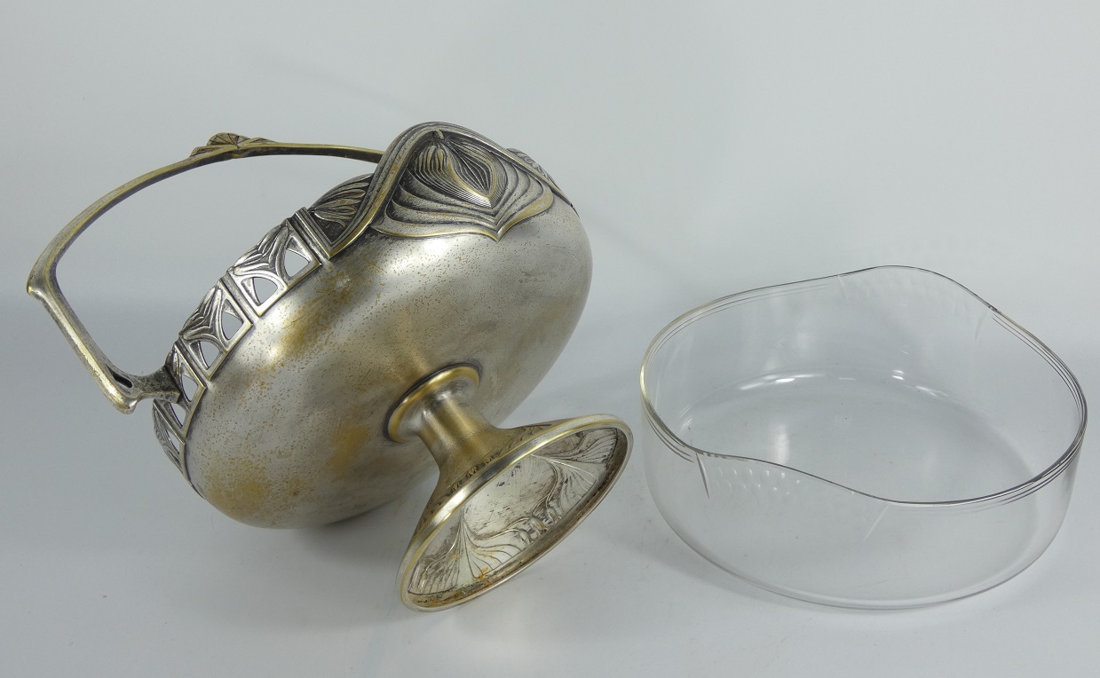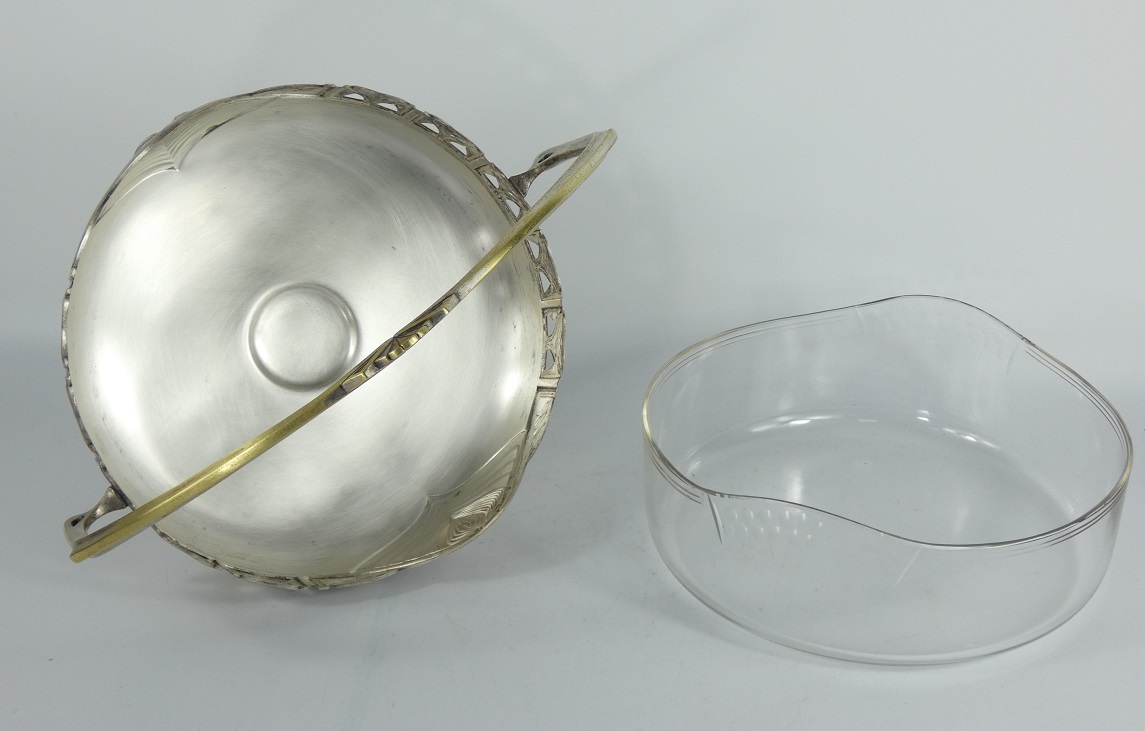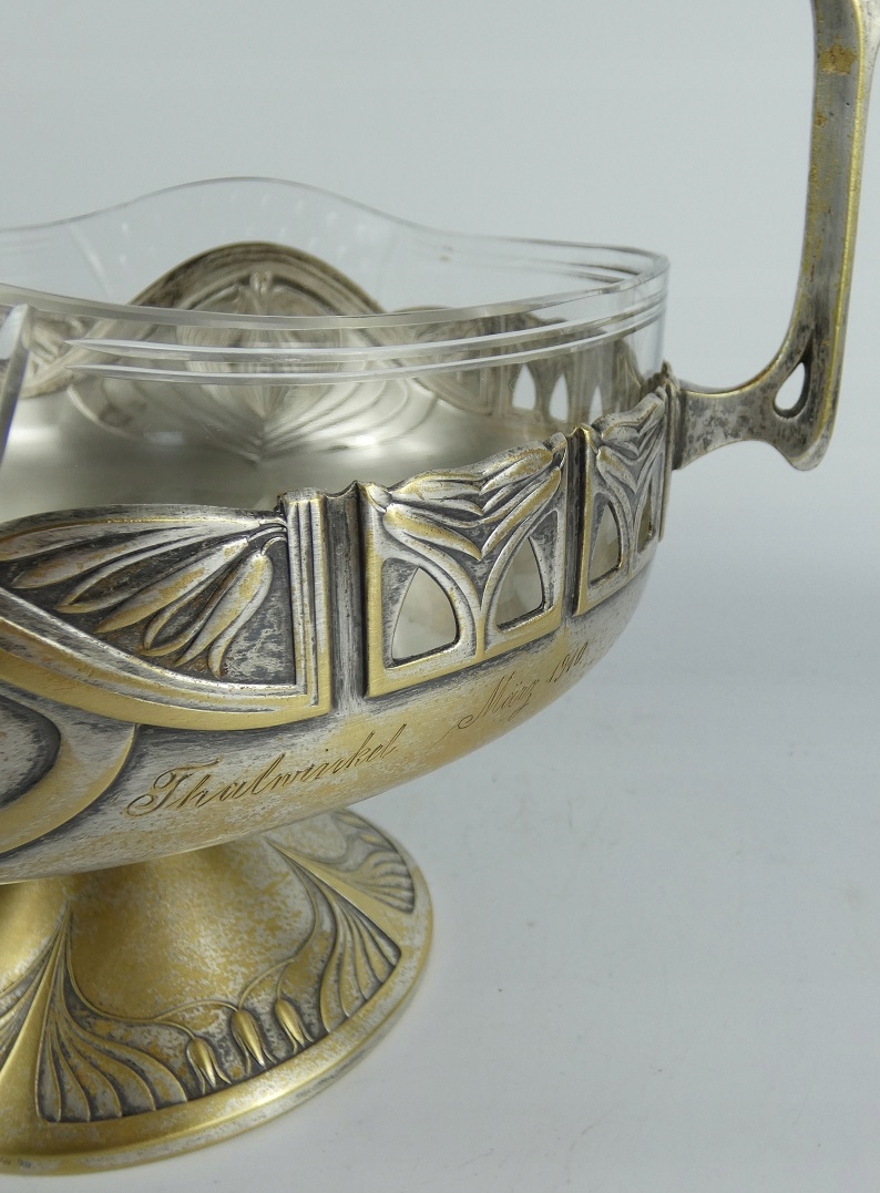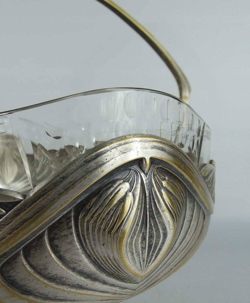 ТАРЕЛКА с ручкой, стеклянная корзина, посеребренная латунь WMF SECESJA