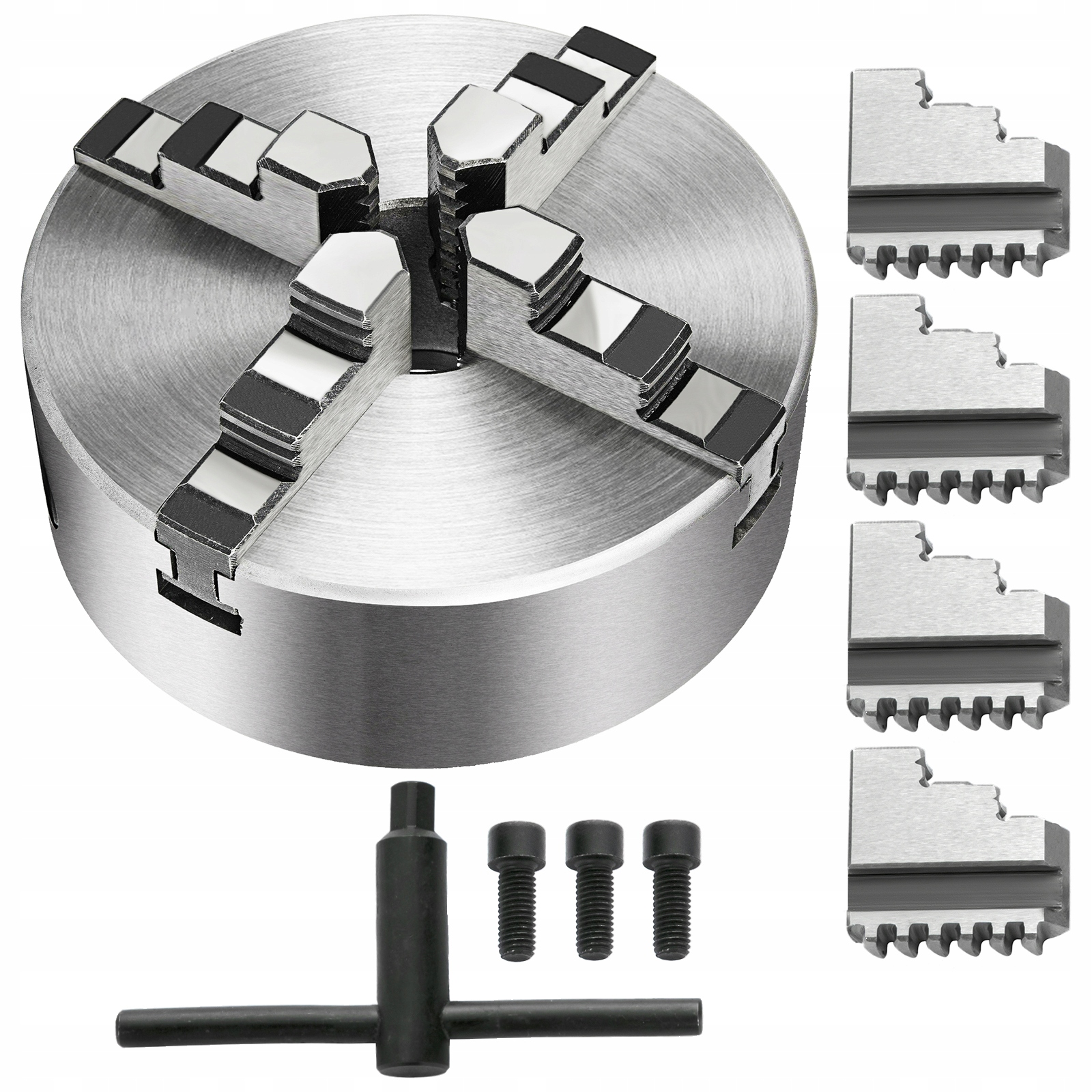 - Четырехкулачковый токарный патрон закален высококачественной сталью, устойчивой к ржавчине и коррозии.