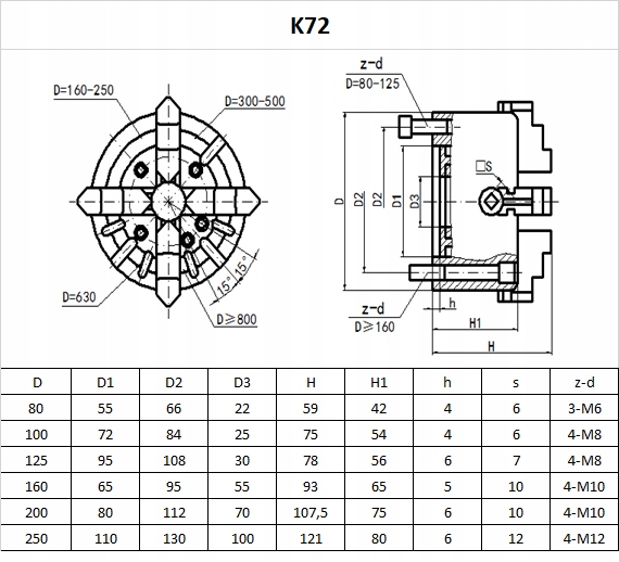 Патрон токарний 4-кулачний 160 мм з незалежними губками К-72