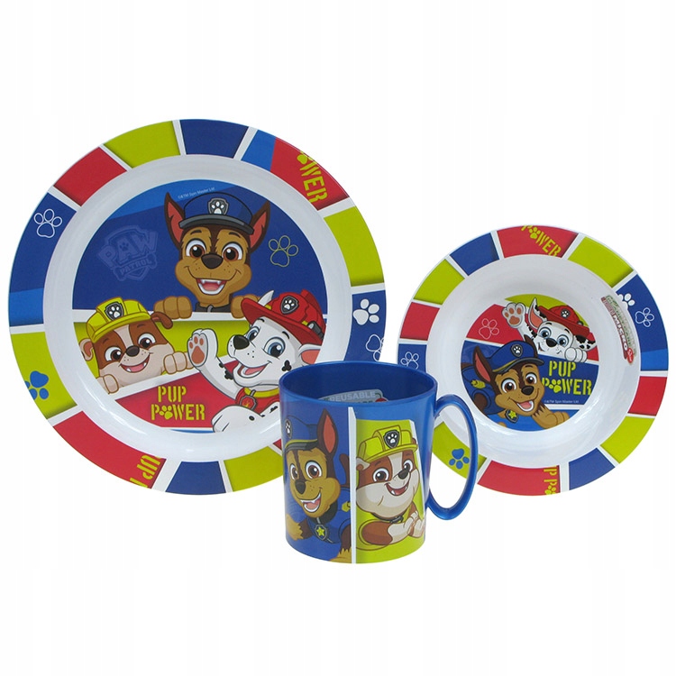 Три -частный набор, для еды для мальчиков или девочек с собачьими собаками. На блюдах героические собаки погоня, Маршалл, обломки и скалистые