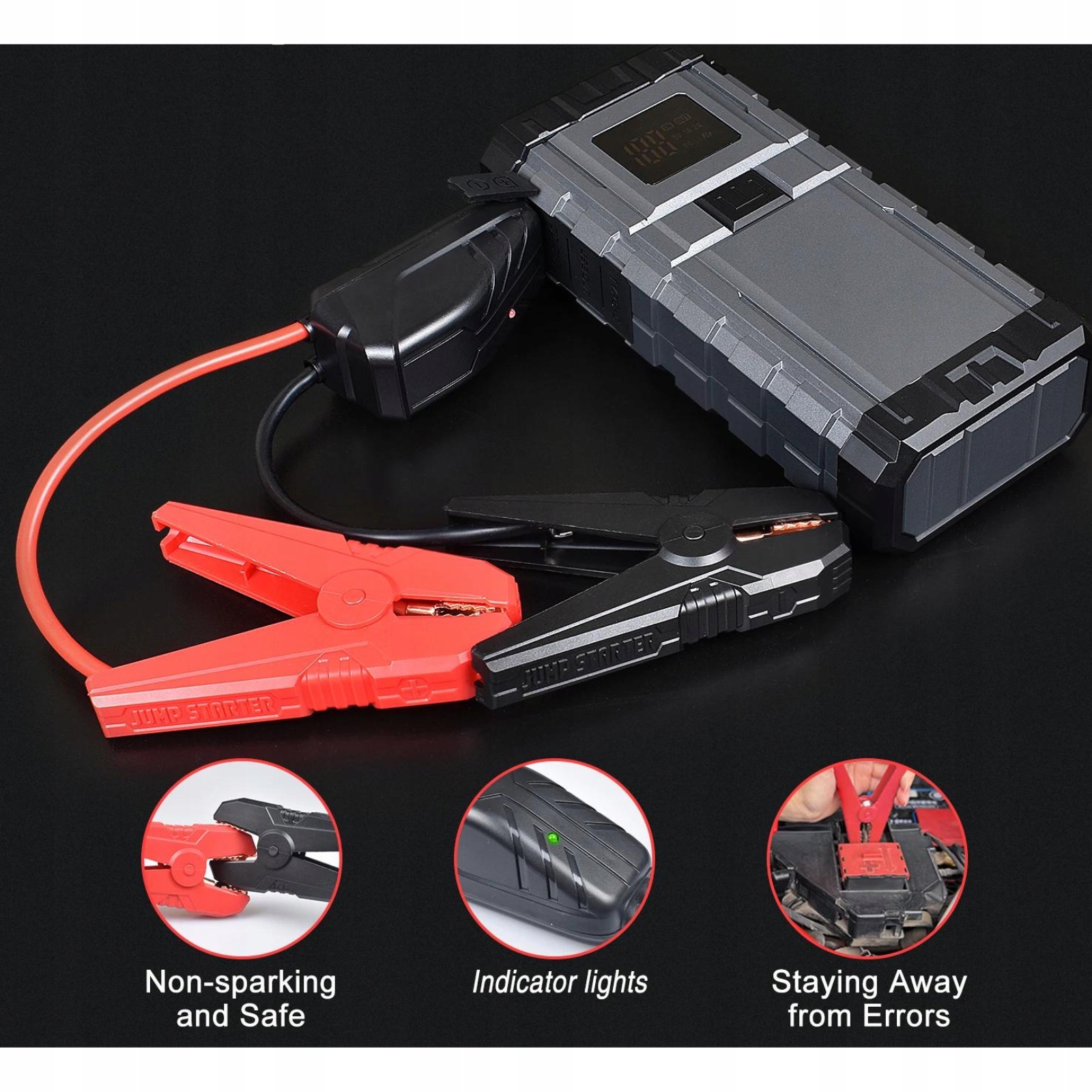Все компоненты стартера перемычки изготовлены из постоянных и наиболее качественных материалов, которые гарантируют длительную и надежную работу представленного устройства. много безопасности сразу после запуска контролирует безопасность пользователя и защищает устройство перед перегревом, коротким замыканием, перевернутым соединением, перегрузкой и чрезмерной перезагрузкой. Интеллектуальный управляющий чипсет , автоматически адаптирует ток к устройству, защищая их от повреждений.