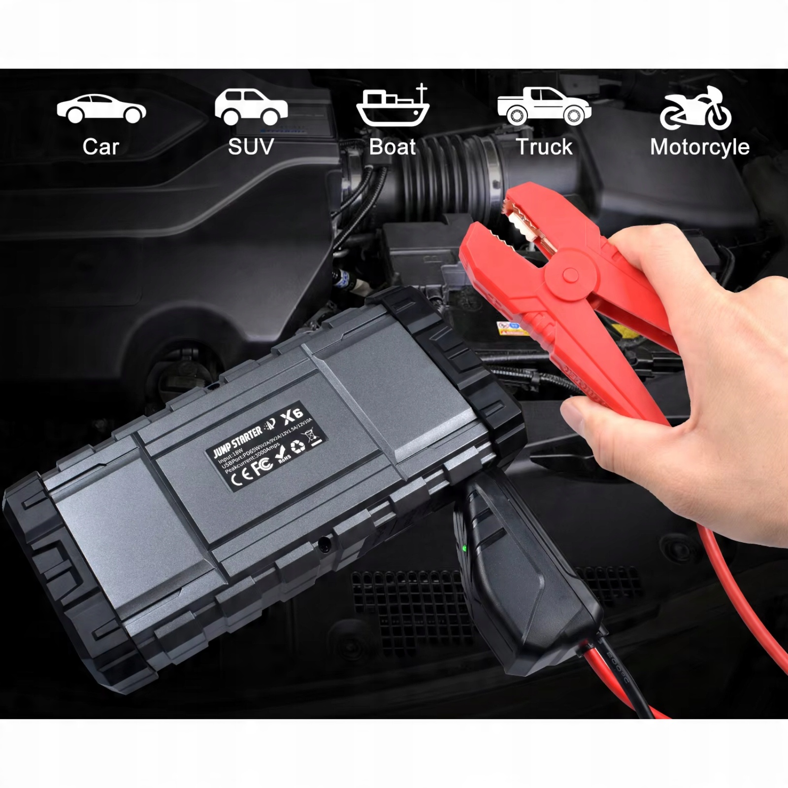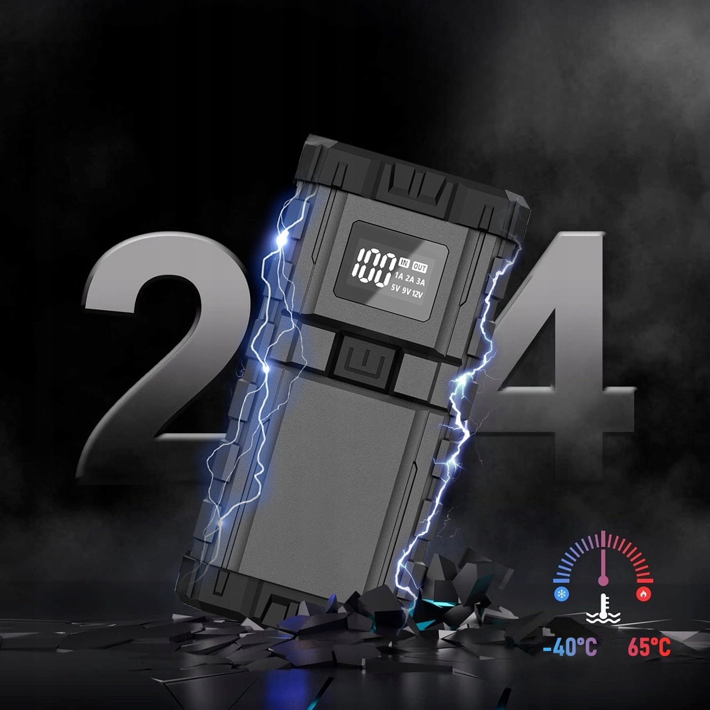 Powerbank Jump Starter Booster Booster Flashlight 24000MAH 65W + сильные зажимы H1>