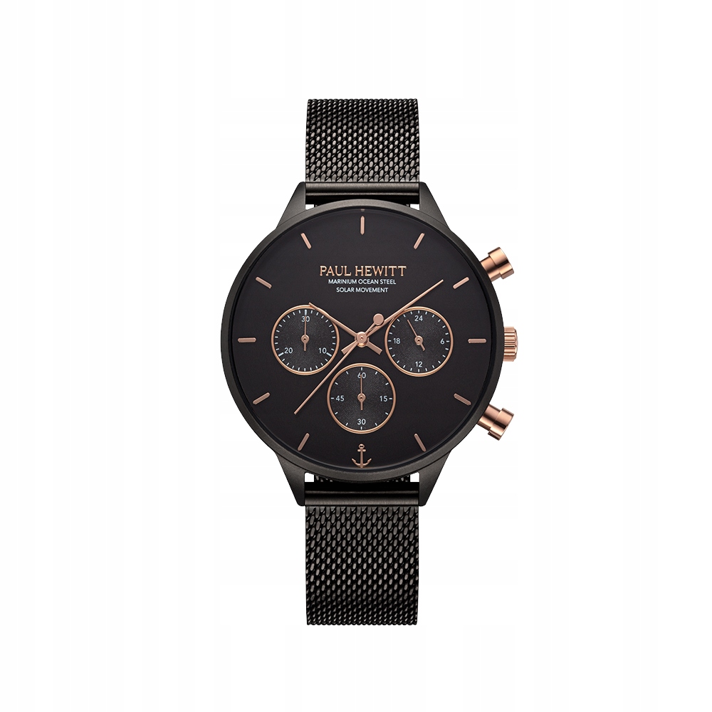 Paul Hewitt PH002811 — женские часы на основе кварцевого механизма. Он состоит из черного стального корпуса с элегантным черным циферблатом. Часы имеют индикацию даты, дней месяца и недели, а также 24-часовой формат времени. Устройство подвешивается на черный сетчатый браслет. Циферблат покрыт сапфировым стеклом. Водонепроницаемость 50 м.