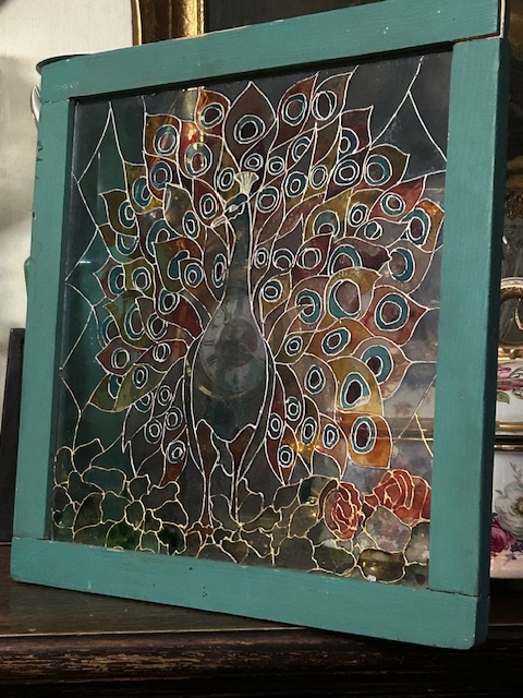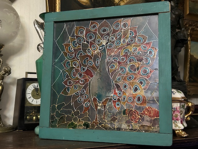 ПАВЛИН СТЕКЛЯННЫЙ СЕЦЕССИЯ СТИЛЬ СТАРАЯ ЖИВОПИСЬ НА СТЕКЛЕ ВИТРАЖИ