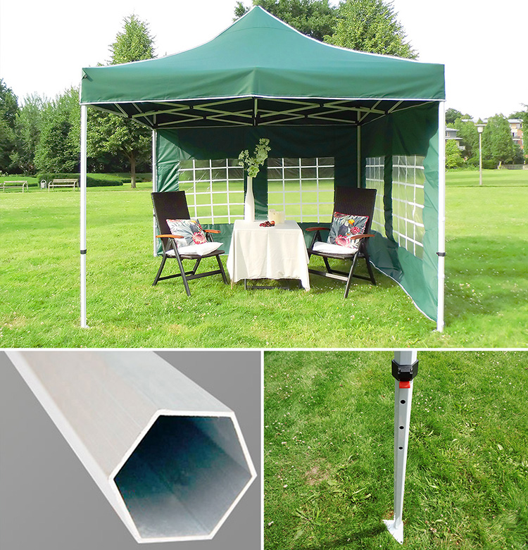 Система Click облегчает сборку и разборку, а также регулировку высоты складного павильона.