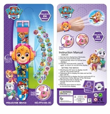 - Часы имеют проектор для показа 24 картинок с персонажами мультфильма "Щенячий патруль". li>