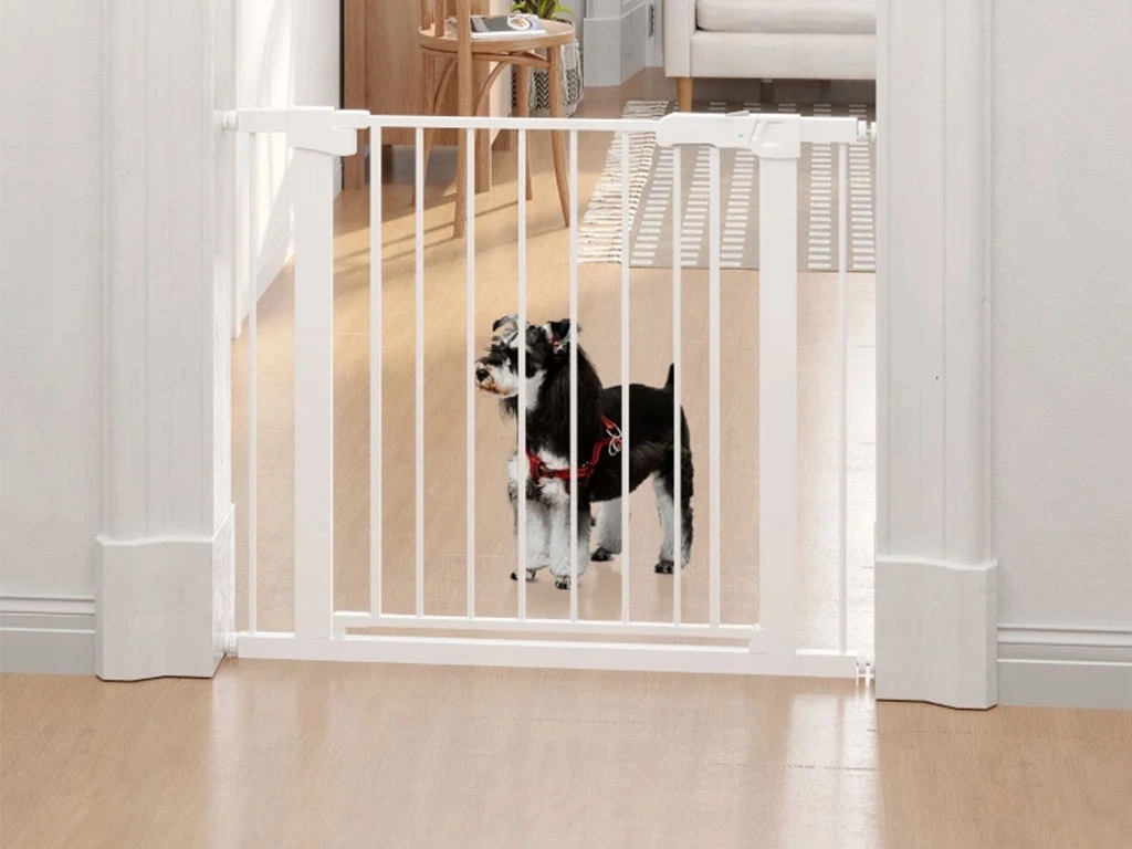 Установка дверного барьера для собак очень проста. Вы можете разместить его в дверных проемах или на лестнице в соответствии с вашими потребностями. Благодаря регулируемой ширине удлинителя от 75 до 96 см он очень гибок и подходит в разные места. Надежно прикрепленный барьер обеспечит защиту для вашего питомца и вас. Кроме того, он был разработан так, чтобы идеально гармонировать с интерьером вашего дома.