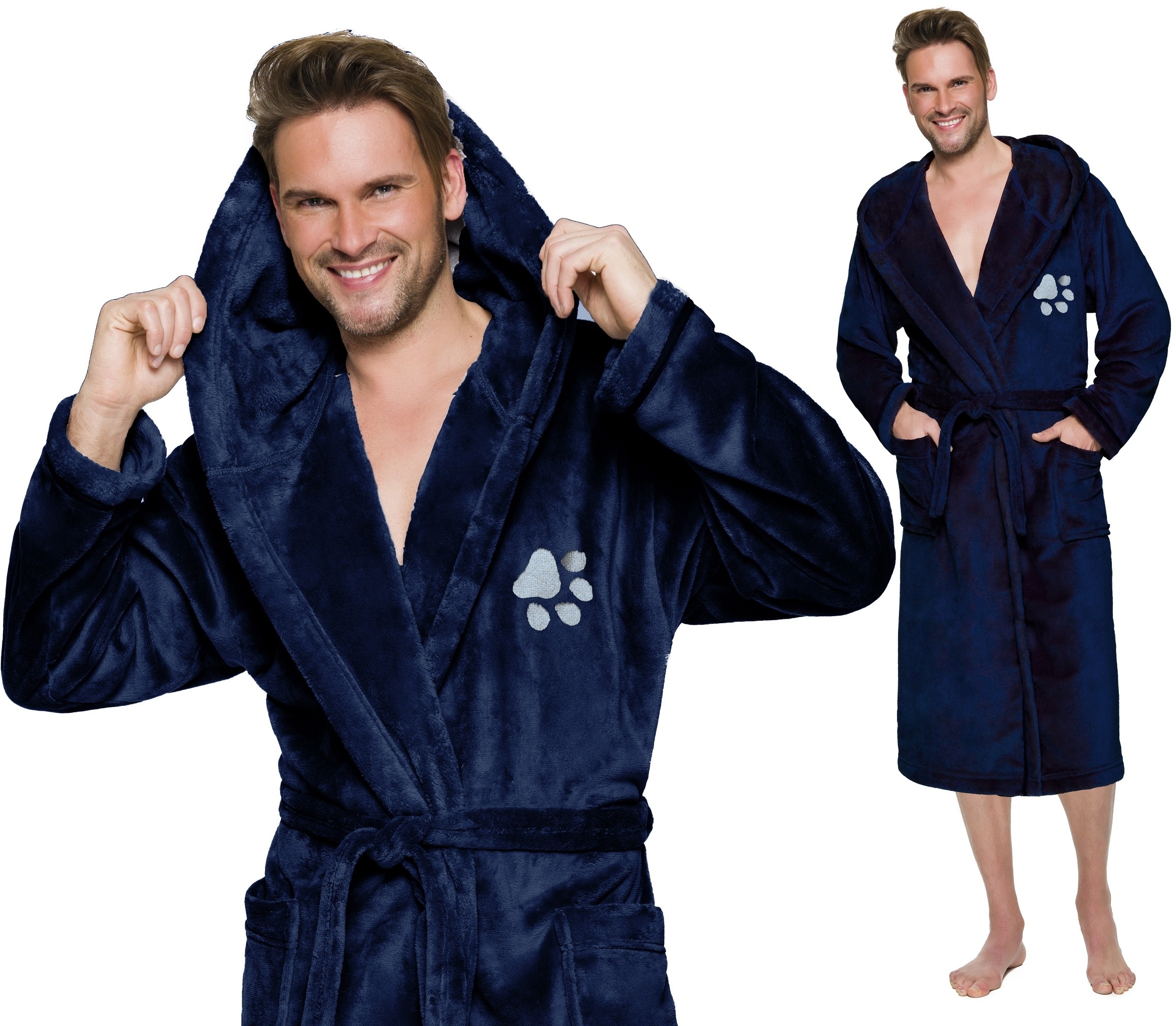 PAWKA ТЕПЛИЙ ДОВГИЙ ЧОЛОВІЧИЙ ХАЛАТ З КАПЮШОНОМ L