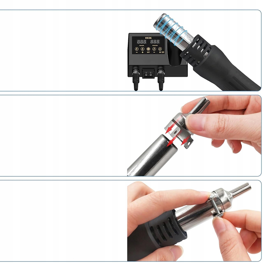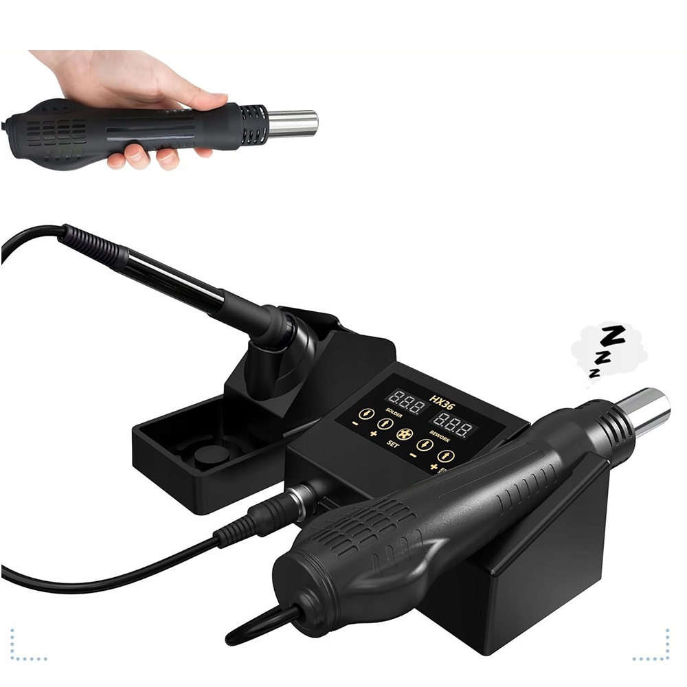 🔥-Комбинациятепловой пушки мощностью 600 Вт и паяльника мощностью 60 Вт. Оба устройства имеют дисплей температуры, преобразование °C/°F, коррекцию температуры, спящий режим и т. д.