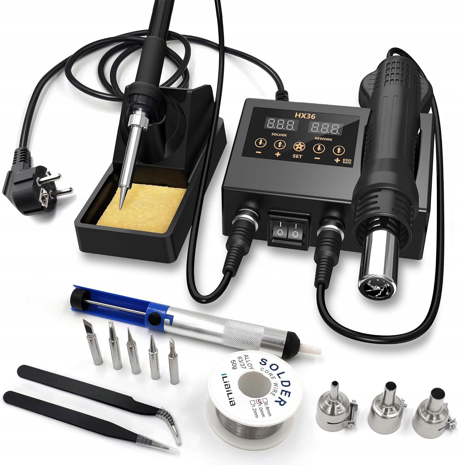 🔥-Температуру паяльника можно регулировать (от 356°F до 932°F), а благодаря точной программе PID он поддерживает постоянную заданную температуру. Тепловая пушка имеет температурный диапазон от 212°F до 932°F, максимальный объем воздуха 120 литров в минуту.