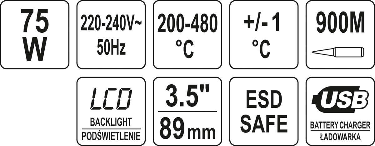 Паяльная станция YT-82456 была выполнена в технологии ESD-безопасной, которая не гарантирует накопление избыточной электростатической нагрузки на корпус. Благодаря этому мы снижаем риск повреждения, например, чувствительные системы SMD. До 350 ° C он нагревается примерно через 25 секунд