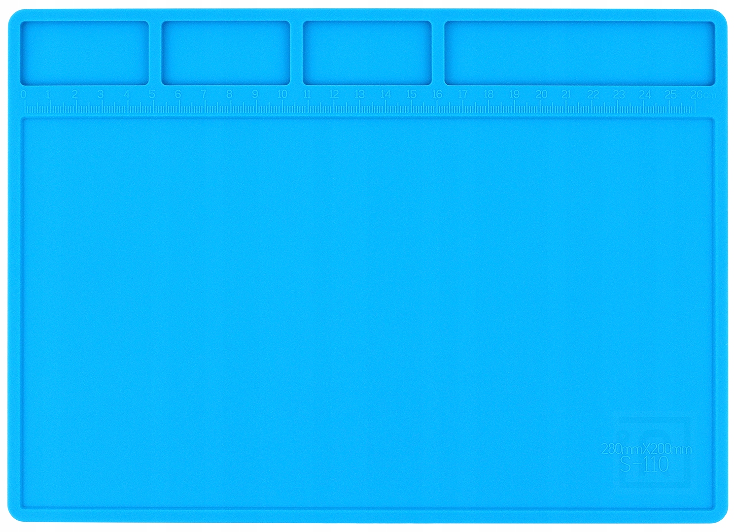Изготовлен из силикона, устойчивого к температуре 500°C. Благодаря этому паяльные работы можно выполнять прямо на плате, расположенной на коврике.