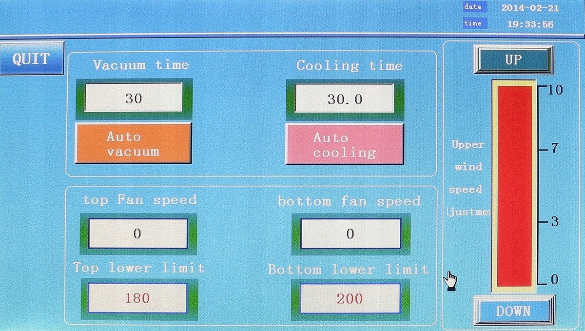 Все параметры, а именно: заданная температура, время нагрева, скорость повышения температуры с течением времени, время охлаждения, время работы вакуумного захвата, можно настроить независимо с помощью сенсорной панели управления MCGS LCD Human-Machine Interaction (HMI) HD с диагональю 7". На дисплее в режиме реального времени отображаются все параметры работы станции, включая графическую визуализацию состояния процесса нагрева, а также заданных и достигнутых температур на графиках.