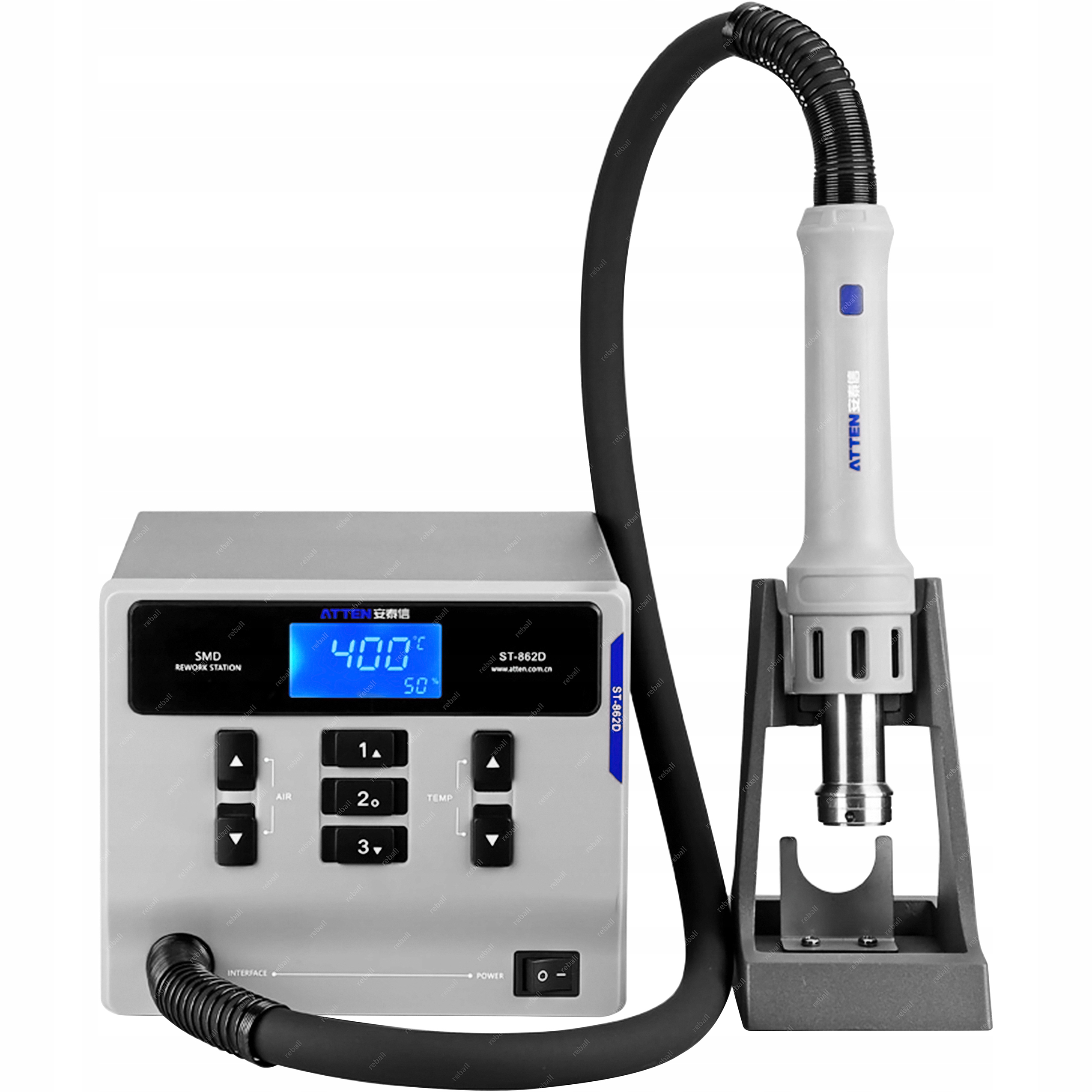 Паяльная станция Atten ST 862D — инструмент, используемый для пайки электронных компонентов. Вместо традиционного паяльника с жалом в этой станции используется поток горячего воздуха для нагрева компонентов до температуры, необходимой для пайки.