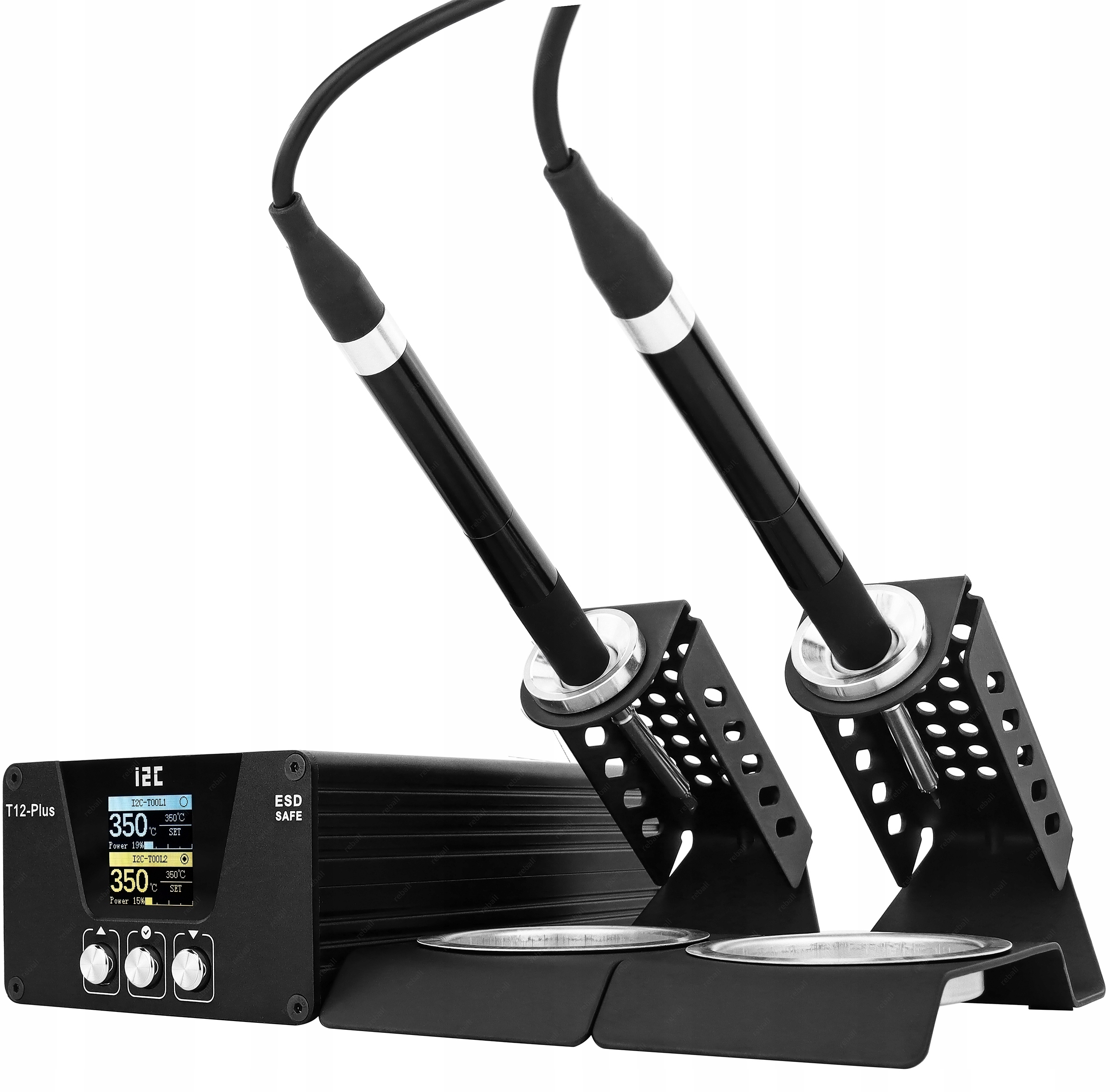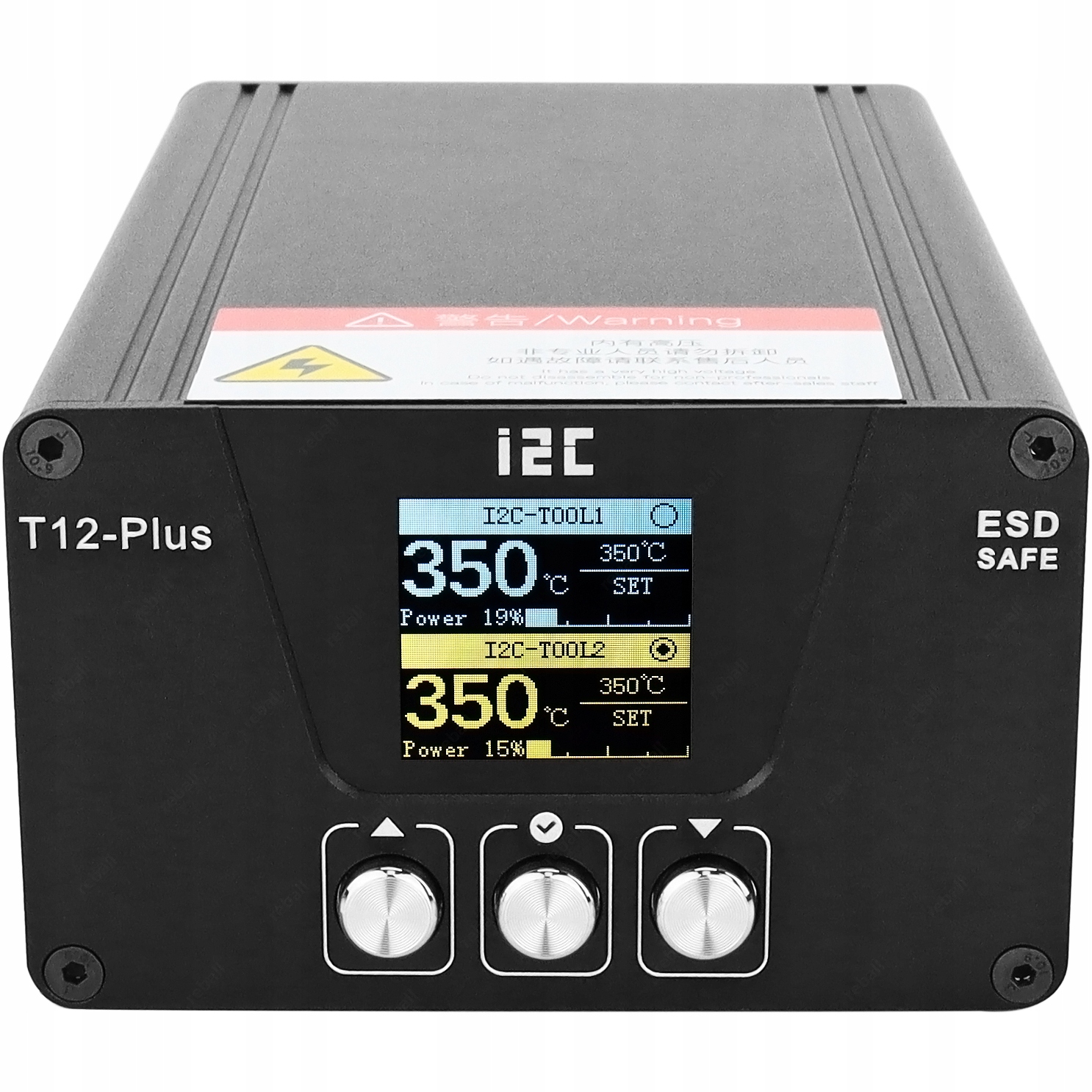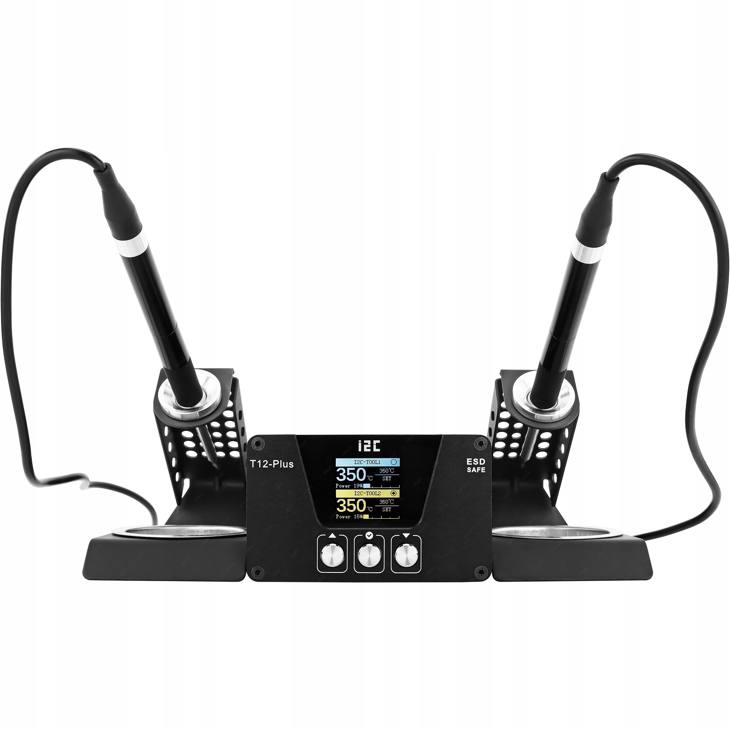 Паяльная станция I2C T12-PLUS мощностью 240 Вт работает с популярными жалами T12. Паяльная станция оснащена двумя независимыми паяльниками, которые отличаются независимой настройкой рабочих параметров. Благодаря такому решению станцию могут обслуживать два электронщика одновременно!