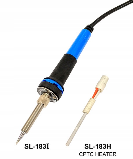 Нагреватель CPTC установлен внутри терморегулируемого паяльника SL-183, который представляет собой модифицированную конструкцию нагревателя модели SL-30CMC, и скорость пайки выше!