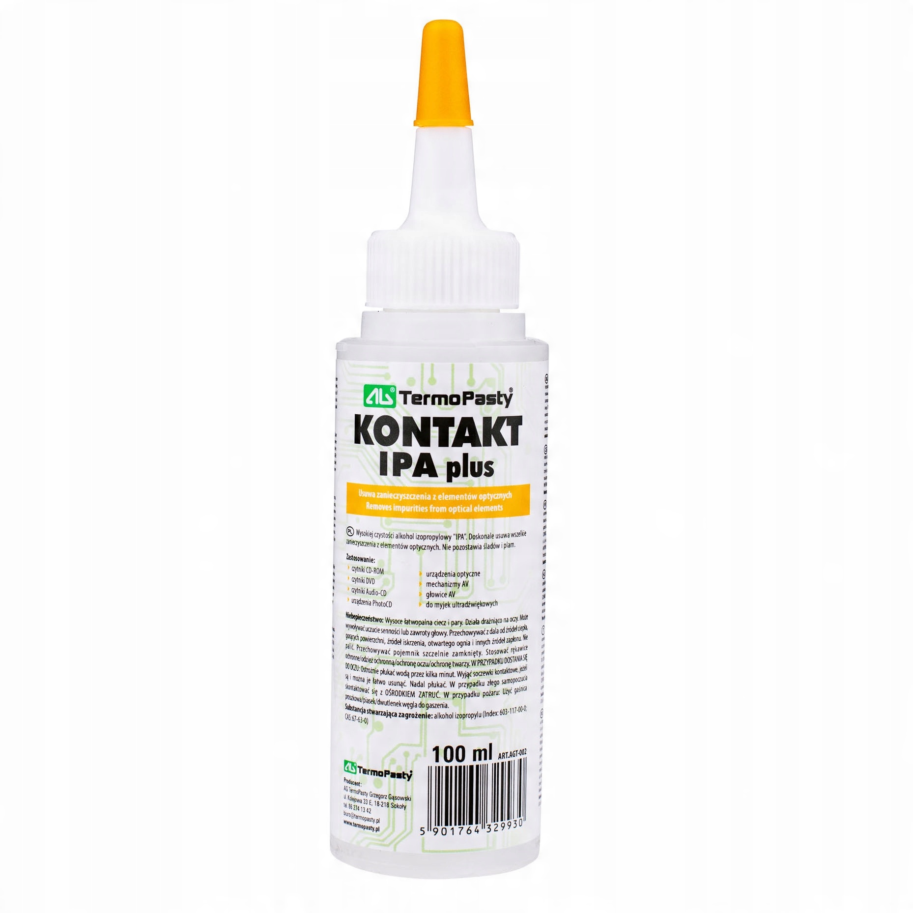 Жидкость CONTACT IPA удаляет масла и смазки, флюсы и другие вредные загрязнения из смол, используемых для очистки и ухода за устройствами чтения компакт-дисков и DVD-дисков.