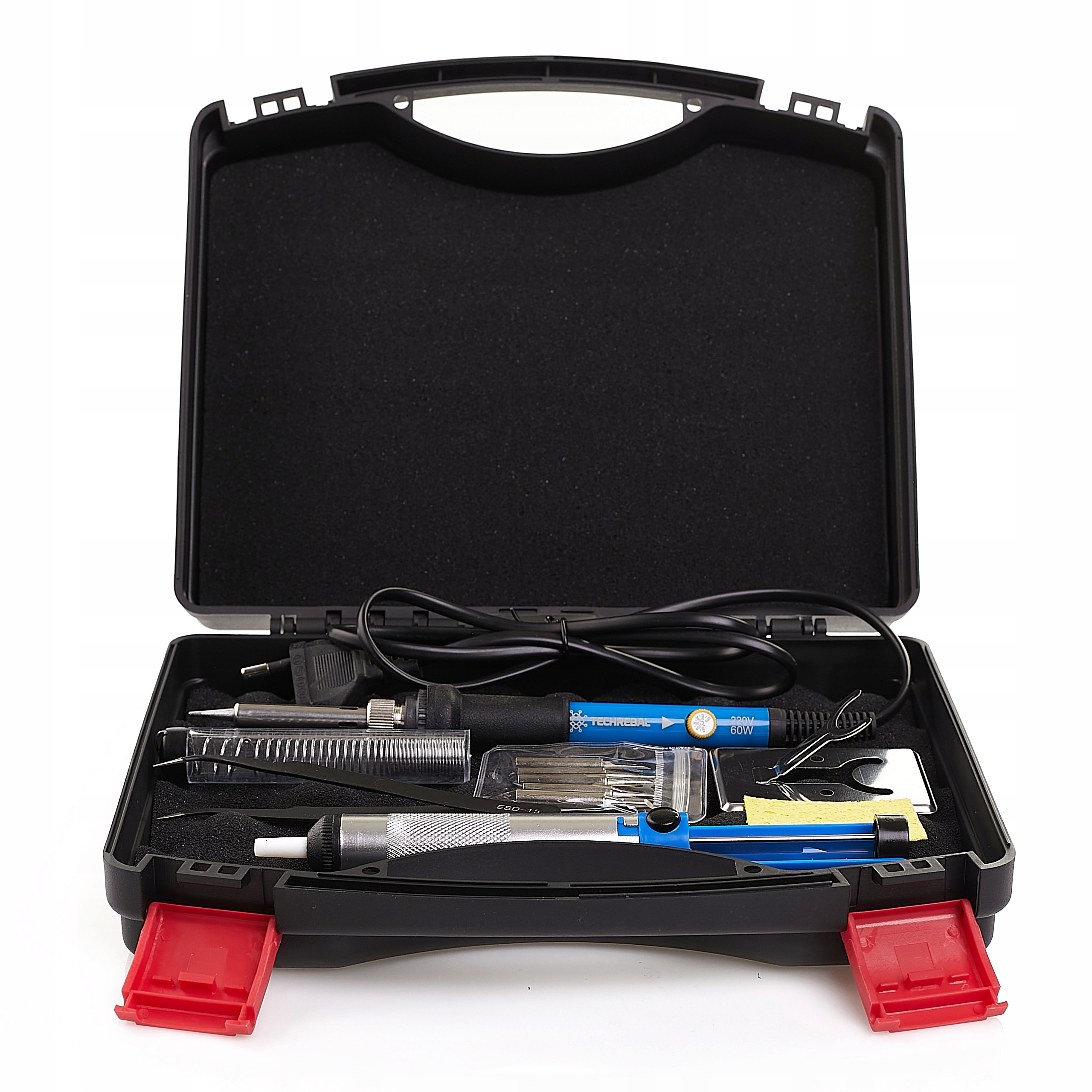 Набор из 11 паяльных элементов в чемодане - прецизионный паяльник Techrebal "Blue Jet" TBJ60W с потенциометром 60 Вт + термофен + набор термоусадочных трубок