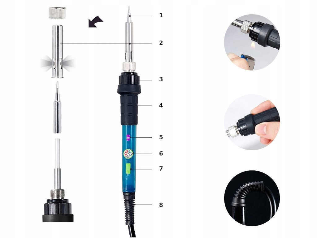 Набор жал, благодаря которому можно легко паять электронные компоненты, которые точно не будут перегреваться, поскольку паяльник имеет регулировку температуры.
