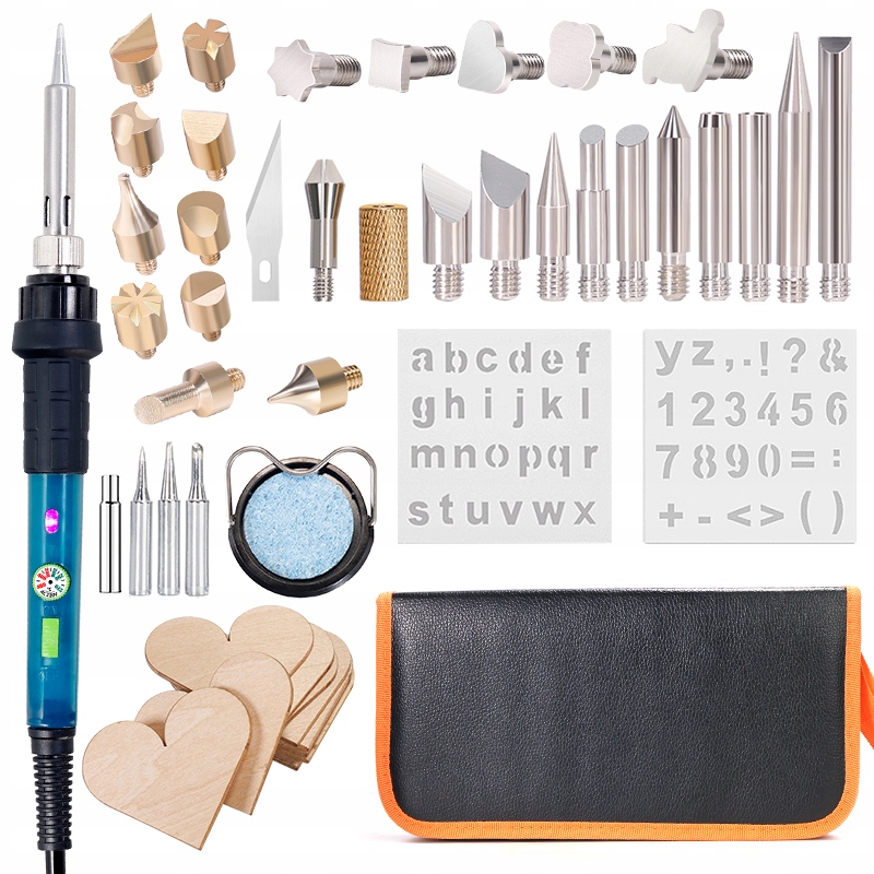 Набор состоит из 25 элементов, что позволит легко выжигать различные виды узоров на дереве, пробке или коже.