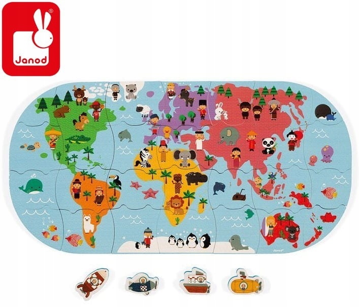 ПАЗЛ ДЛЯ ВАННЫ ДЛЯ ДЕТЕЙ Карта мира 28 деталей Janod 3+