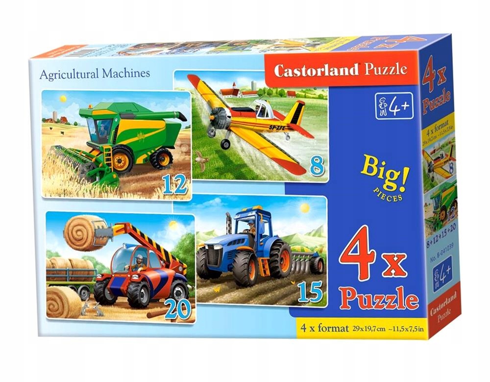 4 x головоломка 8*12*15*20 - 4 головоломки в 1 коробке !!! Это продолжение серии для самой молодой 4xpuzzzle 4*5*6*7. Каждая коробка содержит четыре тематически связанные изображения разных уровней сложности. Благодаря этому малыш может постепенно сталкиваться с все более и более сложными проблемами, получая удовлетворение от каждого последующего успеха. Большие элементы и округлые края картин делают этот продукт очень безопасным и в то же время долговечным и эстетическим. Богатый и разнообразный дизайн позволит ребенку расширить знания об окружающем мире и вдохновить на расширение круга его интересов.