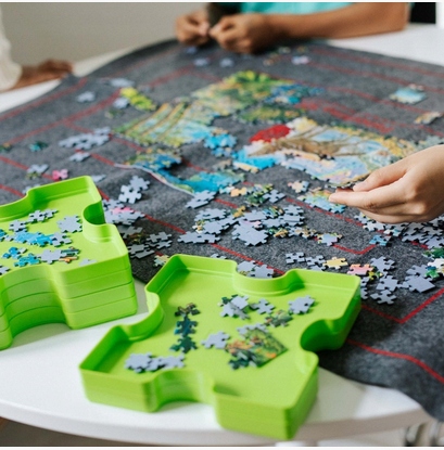 Фетровый коврик для пазлов позволяет легко упорядочивать и хранить незаконченные пазлы. .