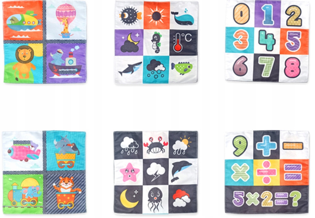 ✅ Образовательная ценность - на каждом платочке с обеих сторон разные изображения: животные, цифры, транспортные средства