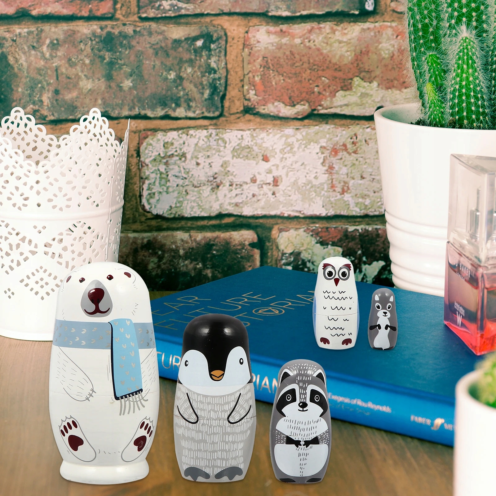 Набор из пяти кукол, полых посередине и одна внутри другой.