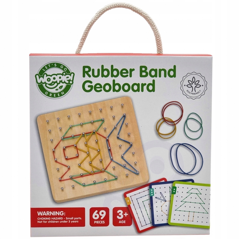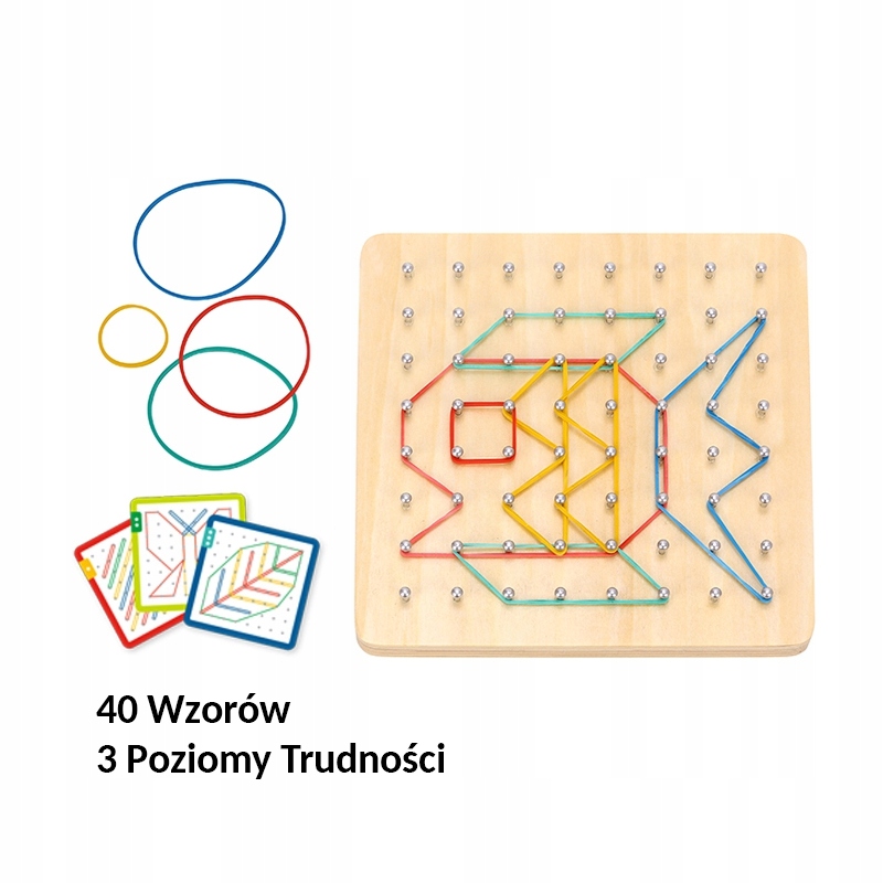 Это развивающая игра, развивающая творчество и воображение. Набор состоит из 48 резинок и 20 двусторонних карточек с 40 узорами различной степени сложности (3 уровня). В этой игре дети пытаются воссоздать изображение на карточке с помощью ластика – создавая контуры различных форм, например рыбки. Развлечение может быть разнообразить, играя в b>запоминание и воспроизведение картинки по памяти малышом. Ребенок также может придумать свою форму/фишку – это ограничивается только творчеством и фантазией. Игрушка развивает мануальные навыки и < б>логическое мышление, воображение и творчество, концентрация и память.