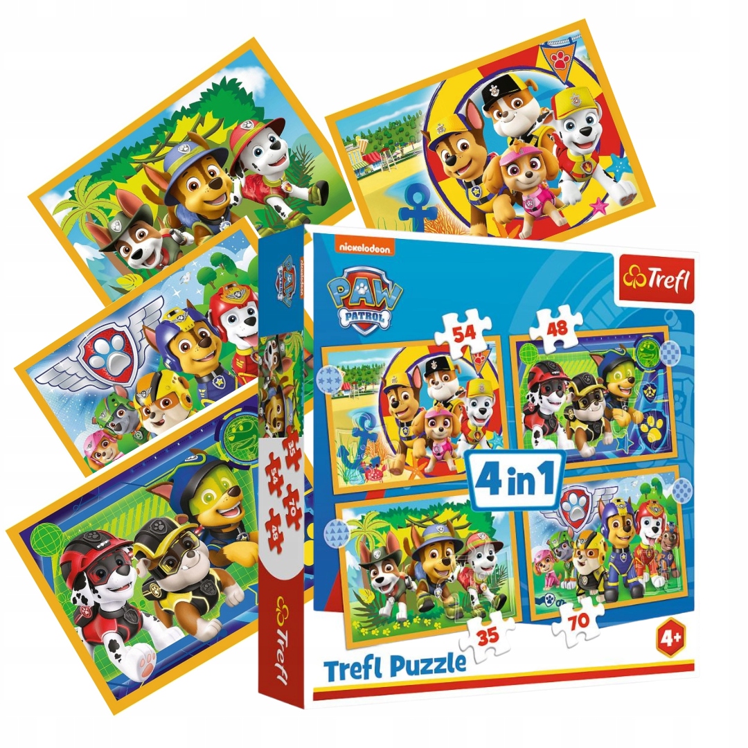 Пазл 4 в 1 ПРАЗДНИЧНЫЙ ПАТРУЛЬ — пазл, состоящий из 4 независимых пазлов, созданный для всех поклонников популярного детского сериала «Щенячий патруль».