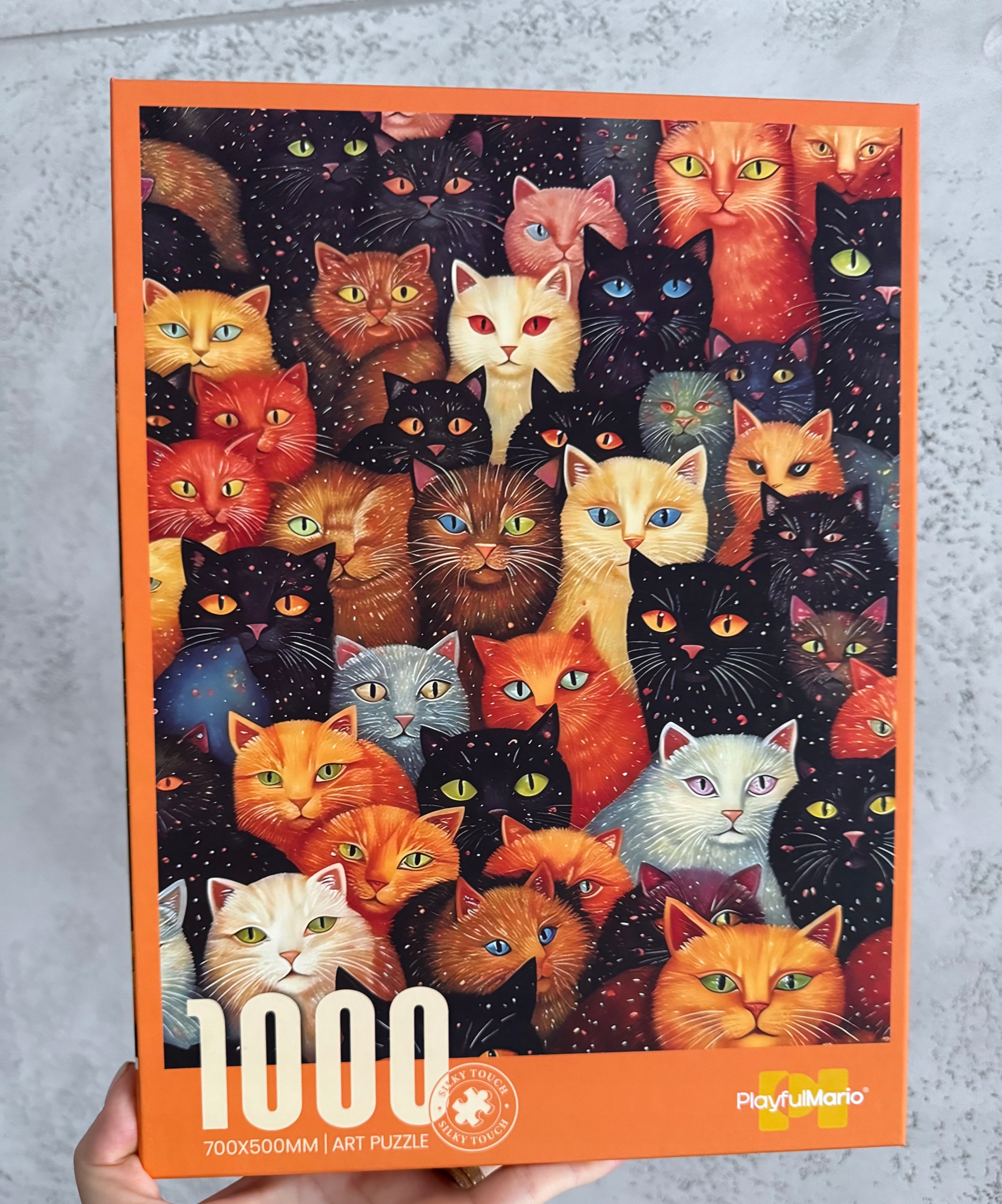 Пазл упакован в эстетичную коробку - идеальная идея подарка для любителей кошек, искусства, семейных моментов и отдыха во время обустройства головоломки.