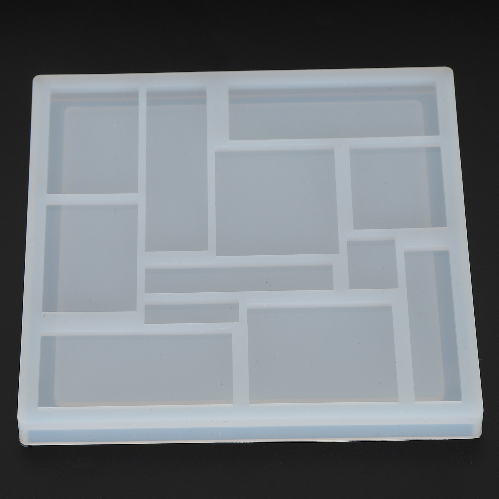 Особенность:1. Обе стороны можно использовать для литья смолы, передняя часть имеет 12 прямоугольных полостей разной формы, а задняя часть имеет лоток для головоломки.