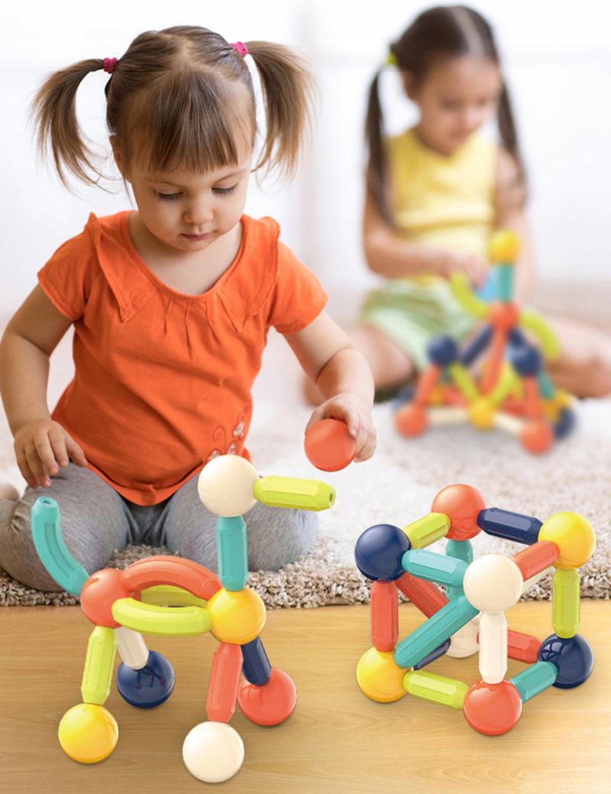 Наши магнитные блоки представляют собой набор из 40 штук большие элементы, что делает развлечение безопасным!
