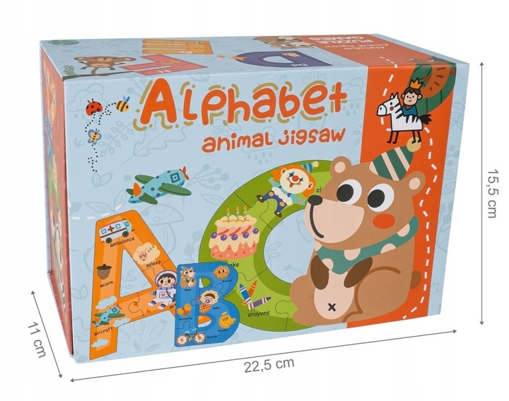 Деревянные головоломки для изучения алфавита. Головоломки содержат рисунки, изображающие предметы или животных, начинающиеся с буквы, которую мы решаем. Это облегчит детям начало их приключений с алфавитом.