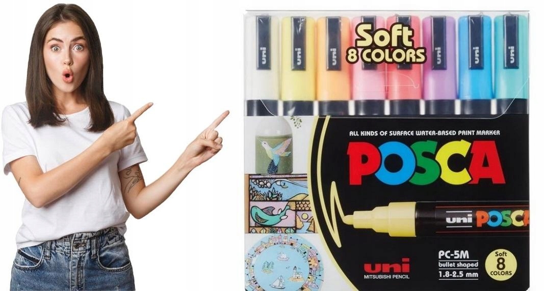 НАБОР МАРКЕРОВ UNI POSCA PC-5M SOFT COLOR (8 ЦВЕТОВ) ПАСТЕЛЬ)