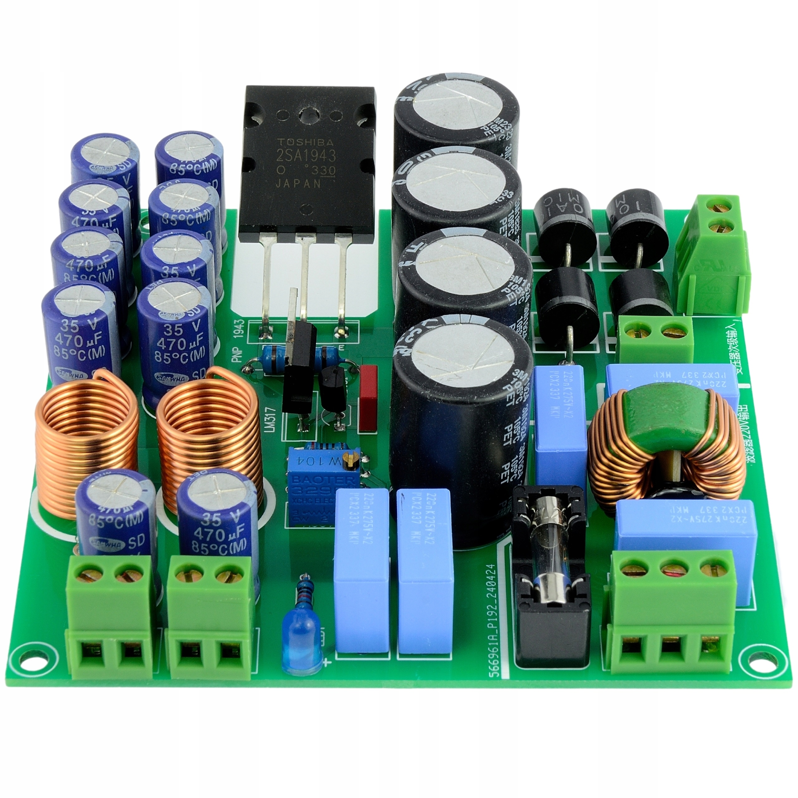Сильноточный модуль питания на базе систем LM317, TL431 и 2SA1943 с сетевым фильтром электромагнитных помех.
