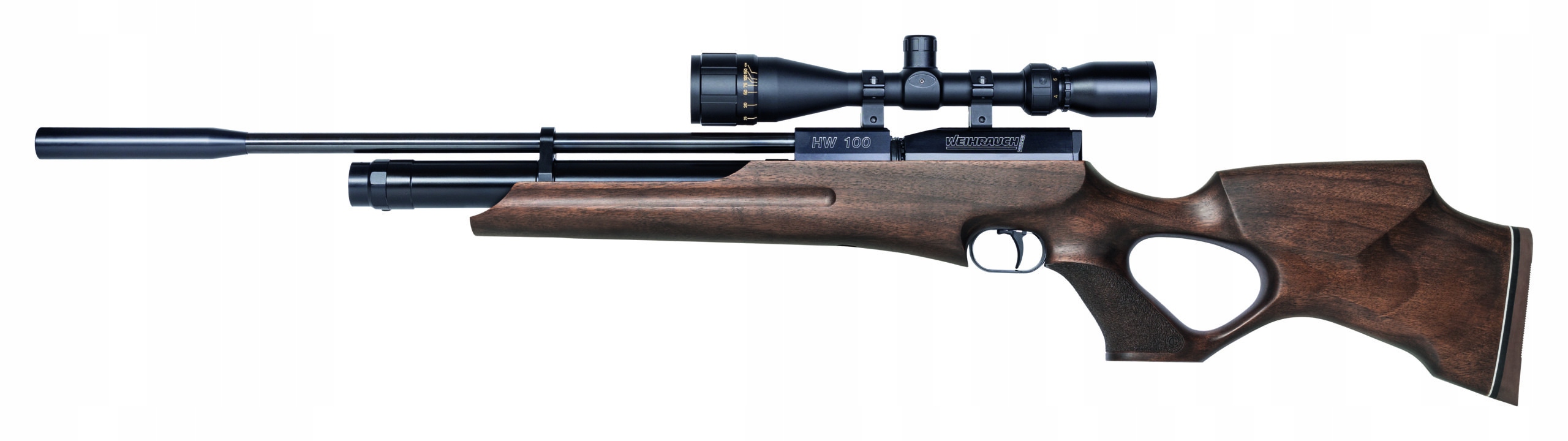 wreadbreaker weihrauch hw 100 t - это немецкая спортивная винтовка в осадке из орехового дерева с отверстием в руке.