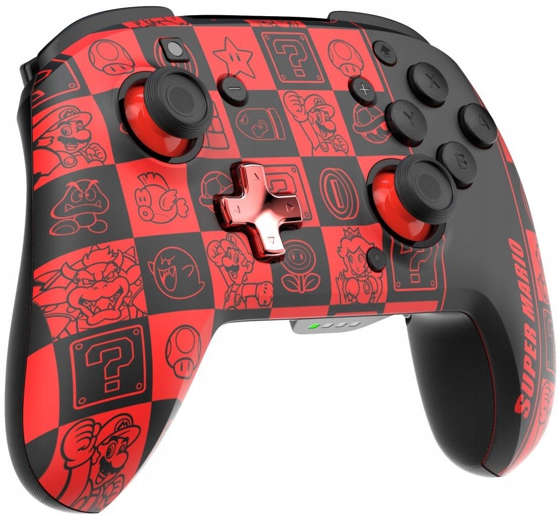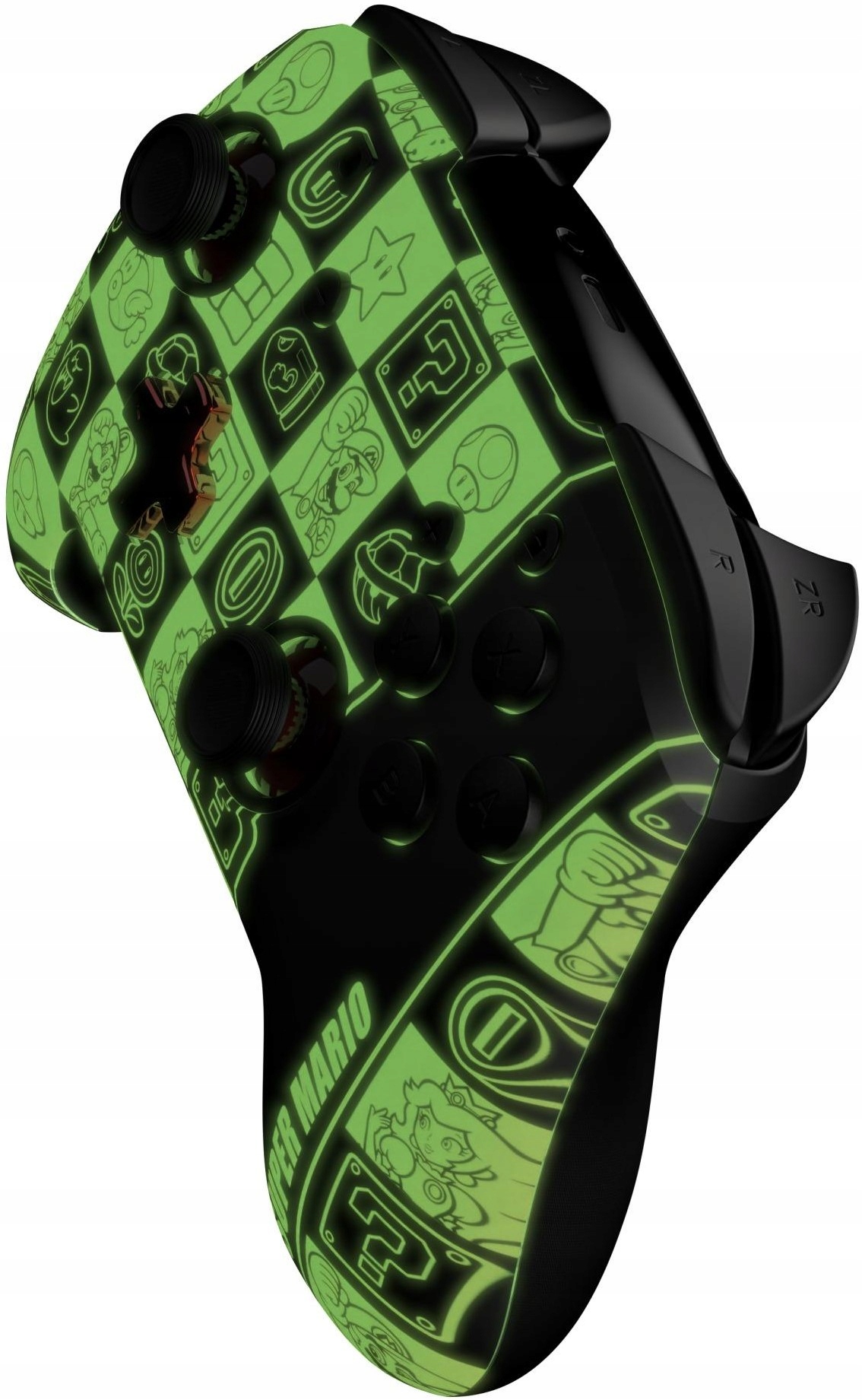 Беспроводной контроллер REMATCH GLOW Mario Star придаст вам энергии во время игры благодаря своему уникальному дизайну, который светится в темноте при воздействии света. Батарея на 40 часов прослужит дольше вас, а благодаря возможности перезарядки вы защитите планету и сэкономите на замене батареи. Устройтесь поудобнее на диване и играйте с комфортом целый день благодаря беспроводному соединению с радиусом действия 9 метров. Запрограммируйте другие функции двух кнопок «Назад», чтобы быстрее выполнять внутриигровые действия и настраивать параметры игры в соответствии со своими потребностями. Сделайте свою игру ярче с помощью официально лицензированного беспроводного контроллера REMATCH GLOW для Nintendo Switch.