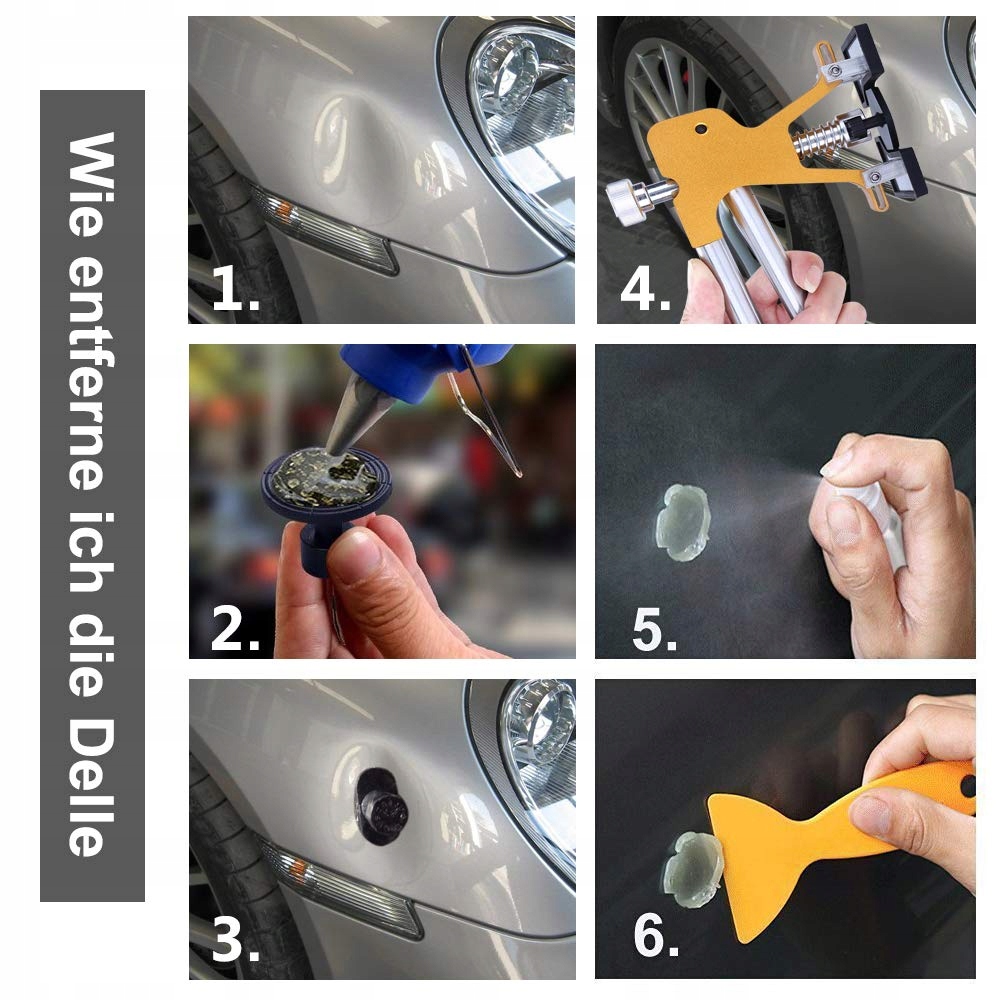 Простые вмятины: Набор инструментов PDR содержит все инструменты, необходимые для ремонта вмятин в автомобиле. Мы эксперты в ремонте вмятин. Независимо от того, являетесь ли вы новичком или профессионалом, вы можете легко сделать ремонт вмятин в автомобиле. Нижняя часть инструмента для удаления вмятин изготовлена из резины и не повреждает исходную краску. После того, как вы подтягиваете стоматологу к инструменту удаления зубов, вы можете опрыскивать оставшийся клей спиртом с концентрацией 90% или выше, чтобы полностью удалить остатки клея без повреждения исходной краски. вмятины Мы также предлагаем манжеты различных форм и размеров, которые более толстые и не ломаются легко. В то же время адгезия нашего клея в палочке была укреплена, и можно удалить вмятины в твердой области тела. Способен более эффективно удалять вмятины и, следовательно, является эффективным решением в случае более серьезных повреждений