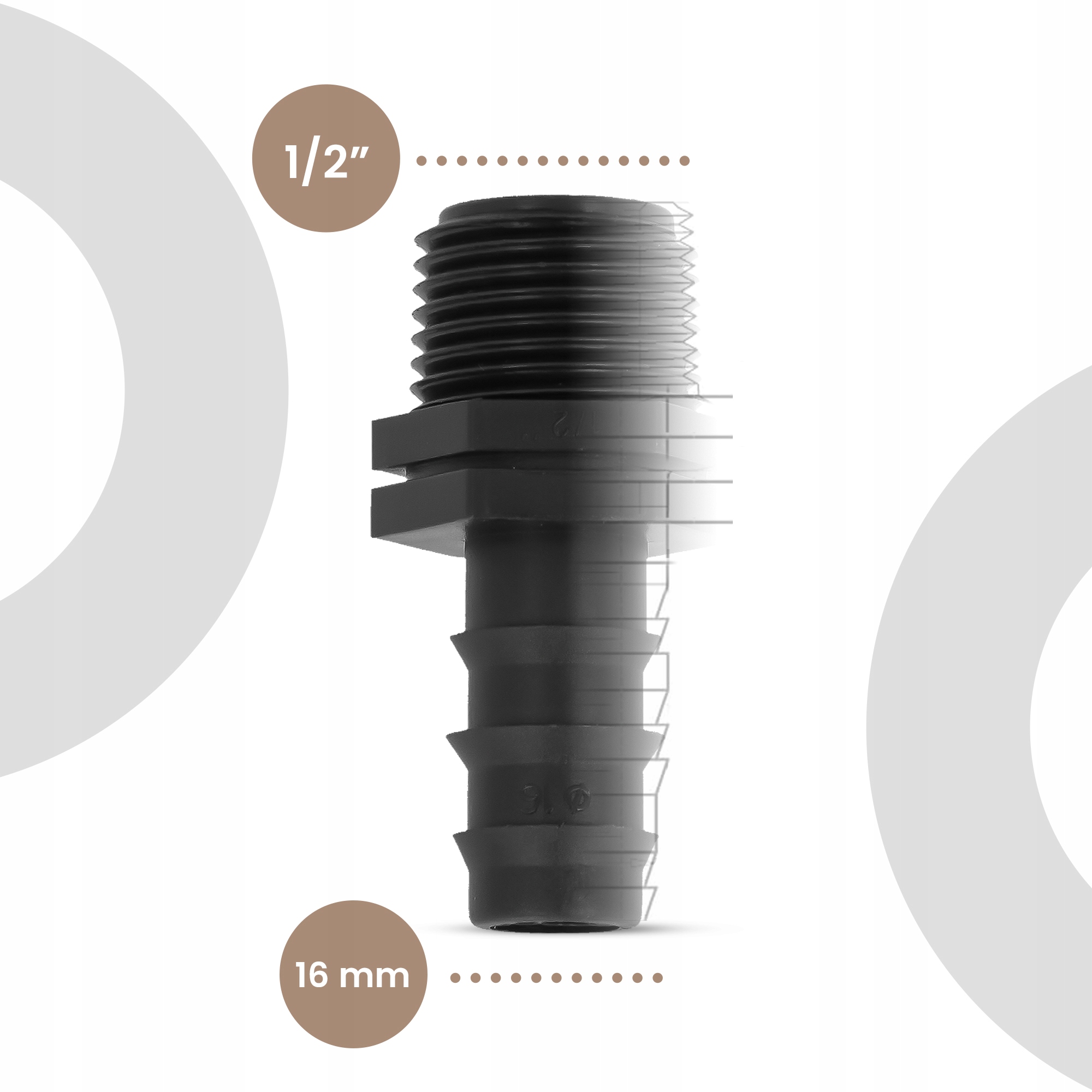 PE разъем 16 мм x 1/2 дюйма, вилка