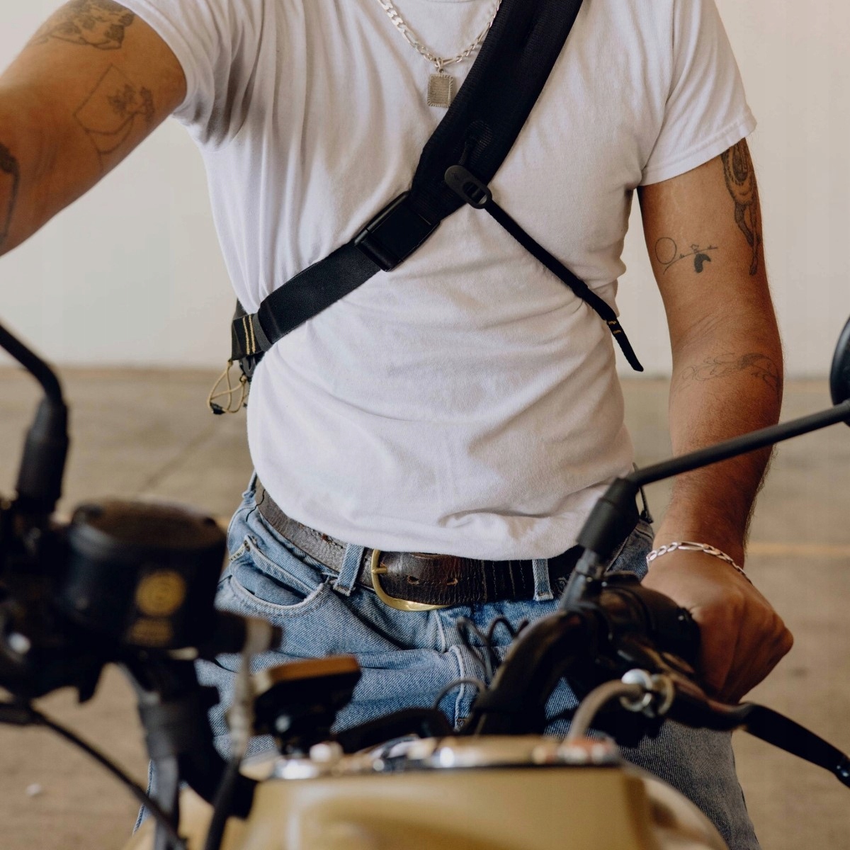 - Плечевой ремень имеет низкопрофильный профиль. нейлоновая пряжка, которой можно управлять одной рукой.
