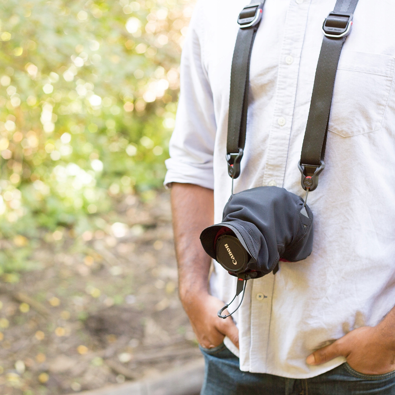 Благодаря Благодаря вырезам для ремешка чехол SHELL можно использовать как с оригинальным ремешком для фотоаппарата, так и с ремешками Peak Design.