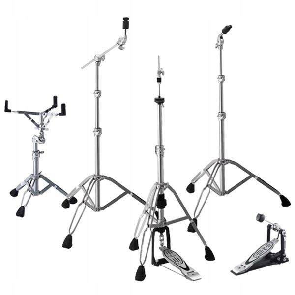 Стойки из листового металла имеют головку с плавной регулировкой угла наклона – так называемый Uni-Lock. Аналогично, корзину на стойке для малого барабана можно расположить без каких-либо ступенек. Стойка для хай-хэта оснащена удобной пружинной регулировкой и профессиональным зажимом верхней пластины. Лапка P-900 уже давно пользуется популярностью как одна из лучших стоп на рынке в ценовом диапазоне до 400 злотых.