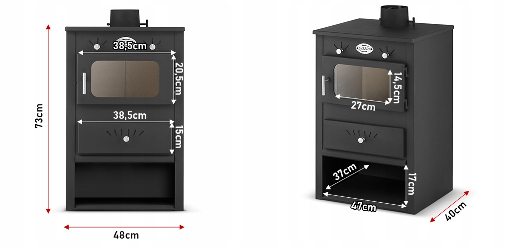 - Размеры печи: высота - 73см / ширина - 48см / глубина - 40см