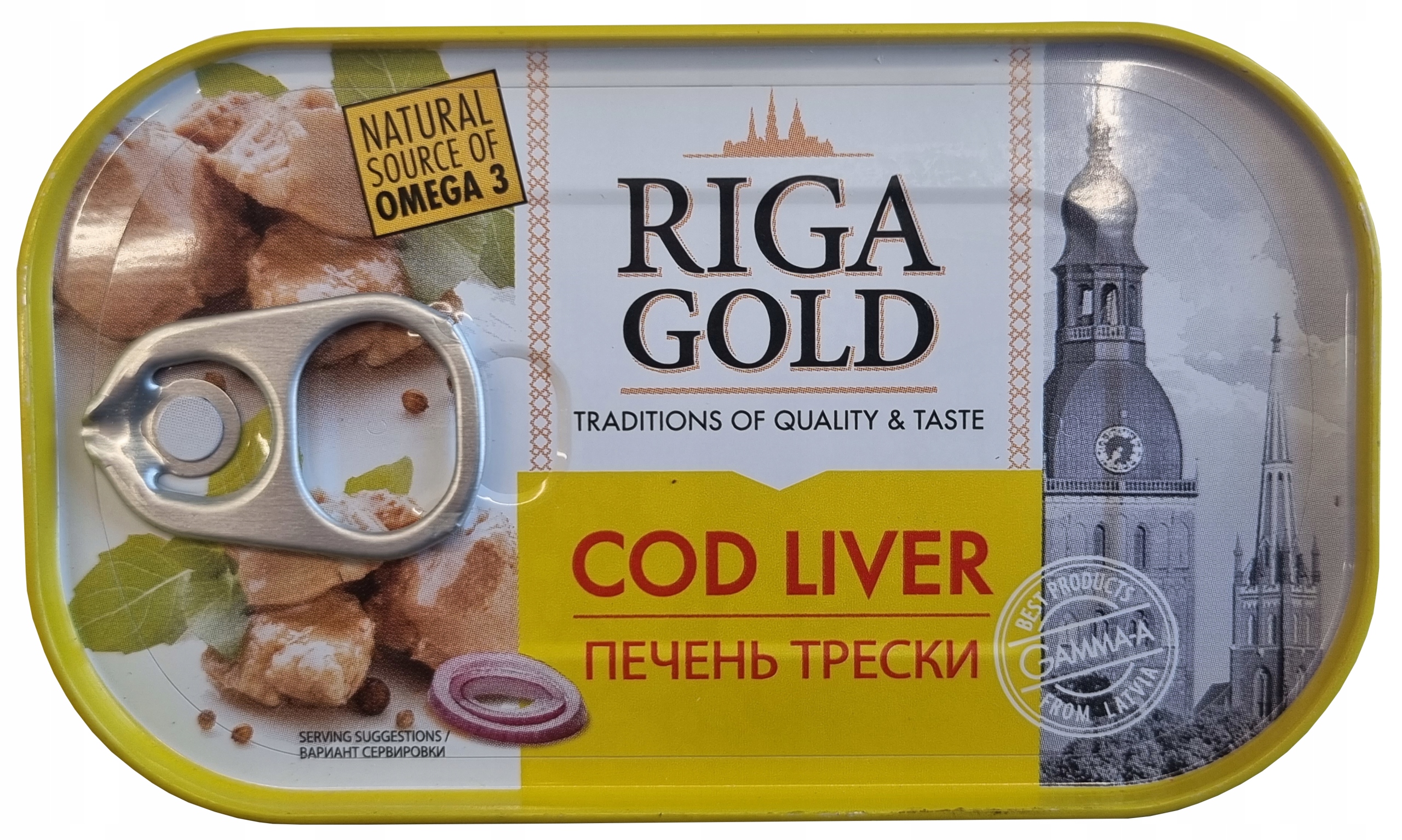 Печень трески в собственном жире - Riga Gold 121г - получена из выловленной в дикой природе трески. Норвежское море FAO27 , высокое содержание натуральных кислот Омега-3.